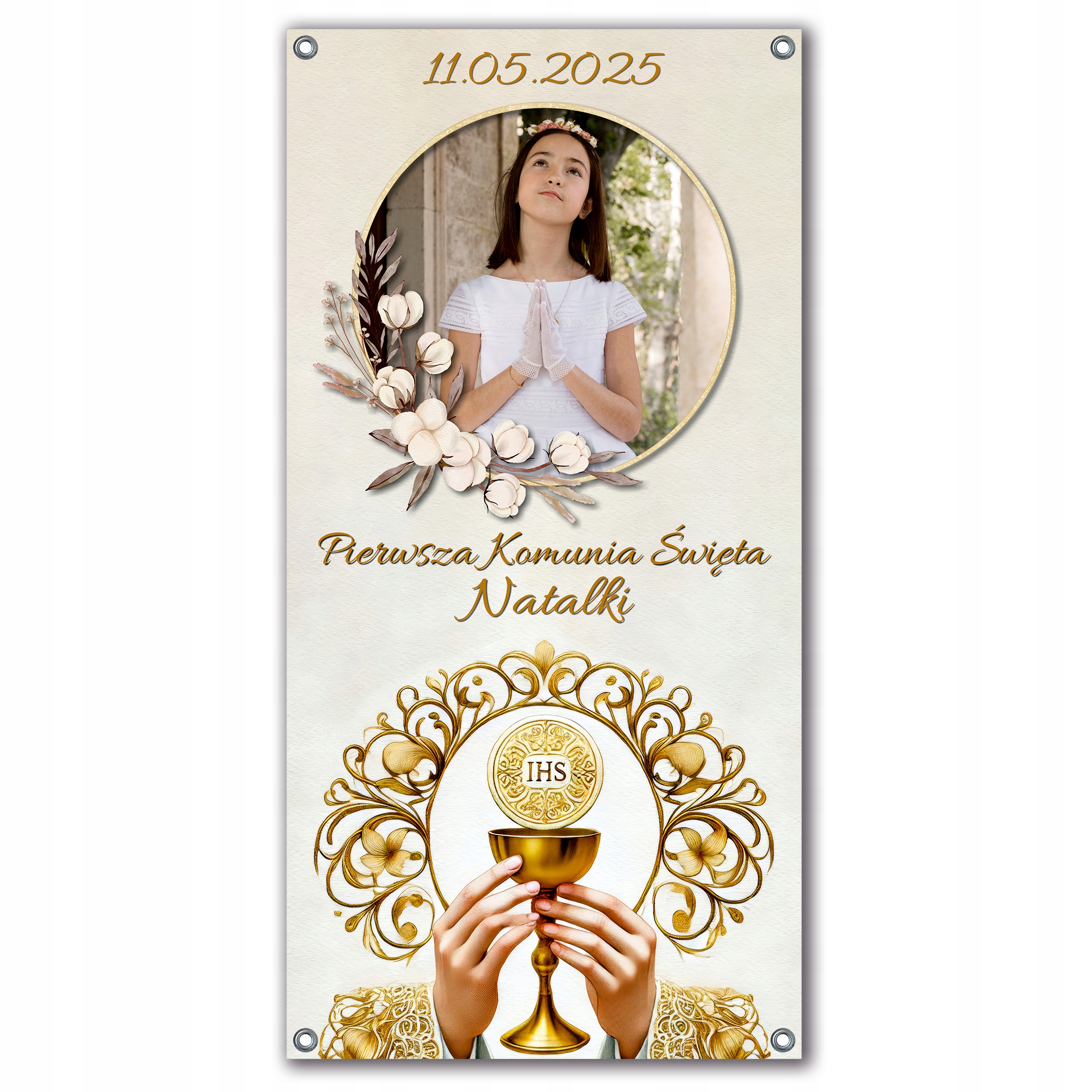 Персоналізований банер для першого Святого Причастя з власною фотографією - унікальний сувенір цього важливого дня! Купівля банера для першого святого спілкування з фотографією вашої дитини та дата церемонії - це чудовий спосіб надати події унікальний та особистий характер. Це елегантне та ефективне доповнення, яке підкреслить унікальність першого святого причастя і зробить цей день ще більш незабутнім! Відповідає стандартним дверима, ідеально підходить для будинків, церков та інших місць молитви.