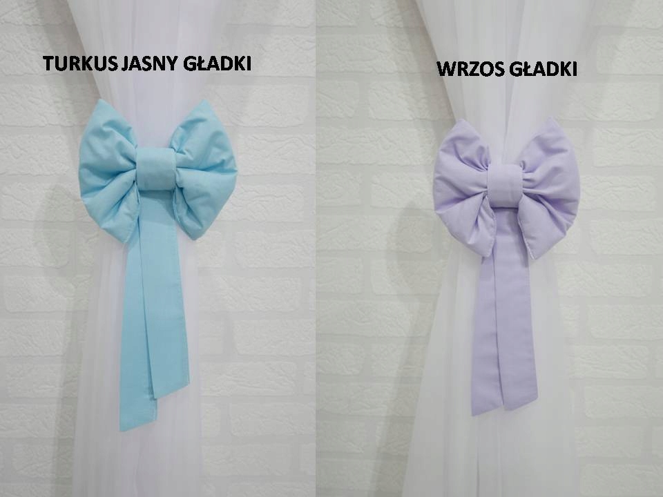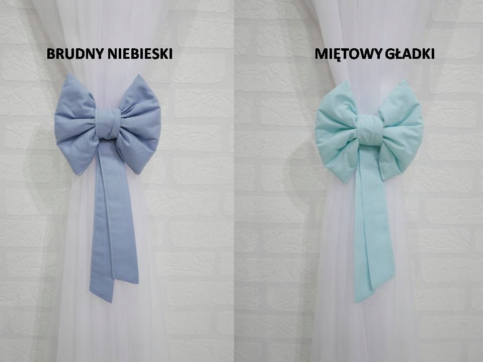 Кожний бант має додаткову зав’язку в колір банта для кріплення до штори чи портьєри (можна звичайно, зніміть їх і закріпіть бантик, наприклад, шпилькою будь-де)