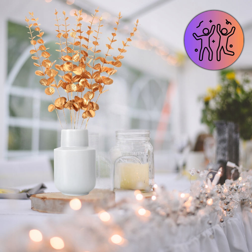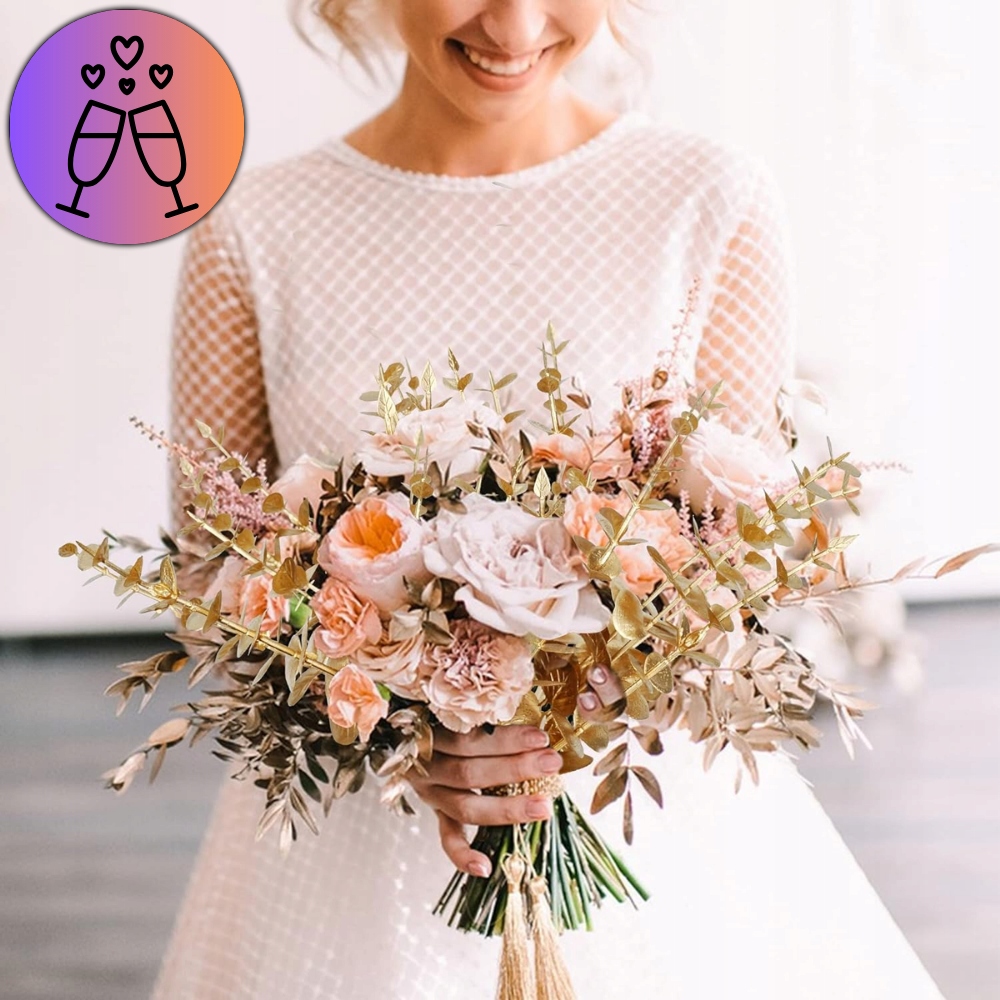 ✅ Будьте готові внести елегантність і стиль у свої прикраси за допомогою нашого набору штучних гілок евкаліпта в золотому кольорі. Ці унікальні гілочки ідеально підходять для оформлення весілля, весілля та дня народження, а також ресторану, додаючи блиску та неповторного характеру будь-якій композиції.