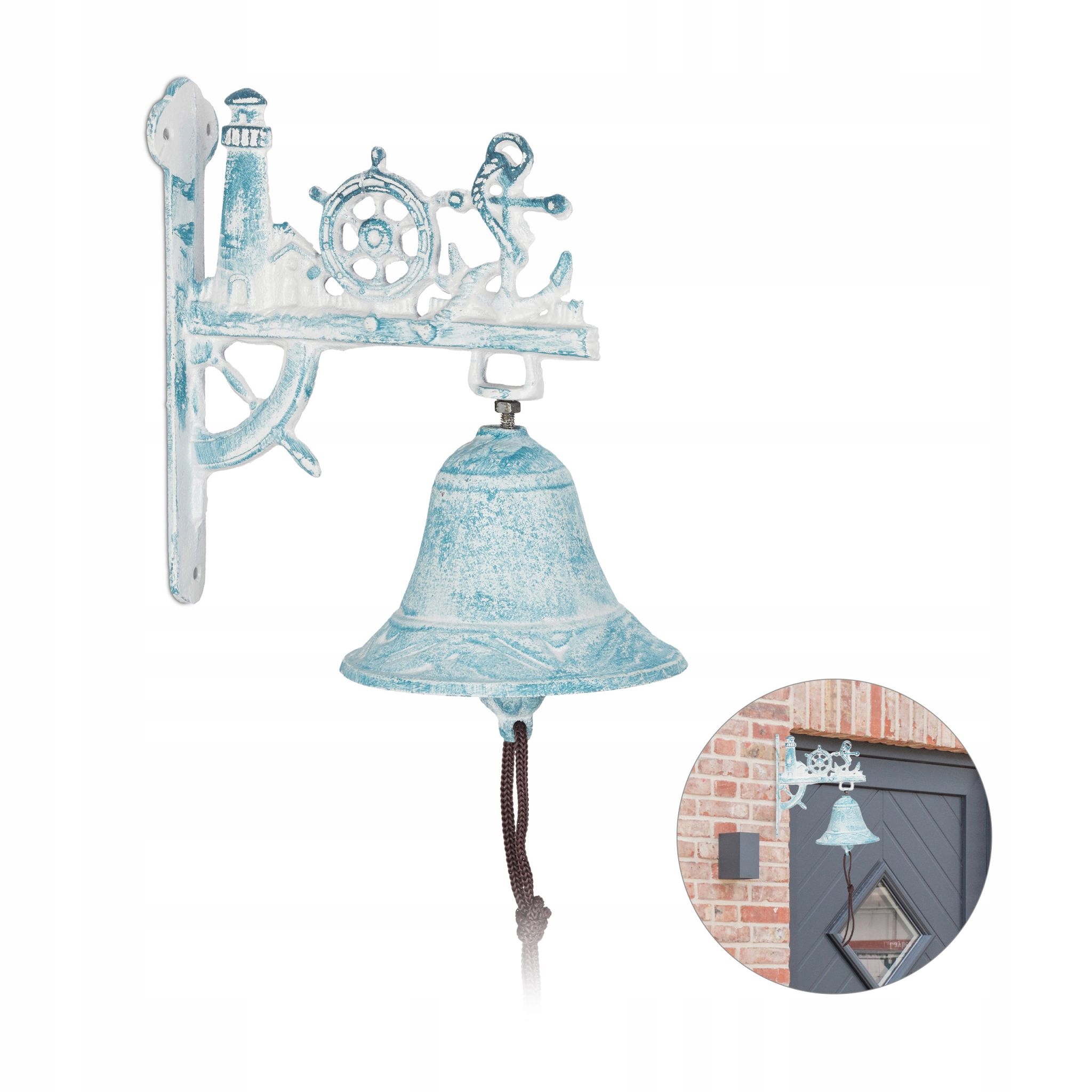 - Дверний дзвінок у стилі морського стилю в антикварному стилі поширює морську чарівність - з контрольною ручкою та якорем