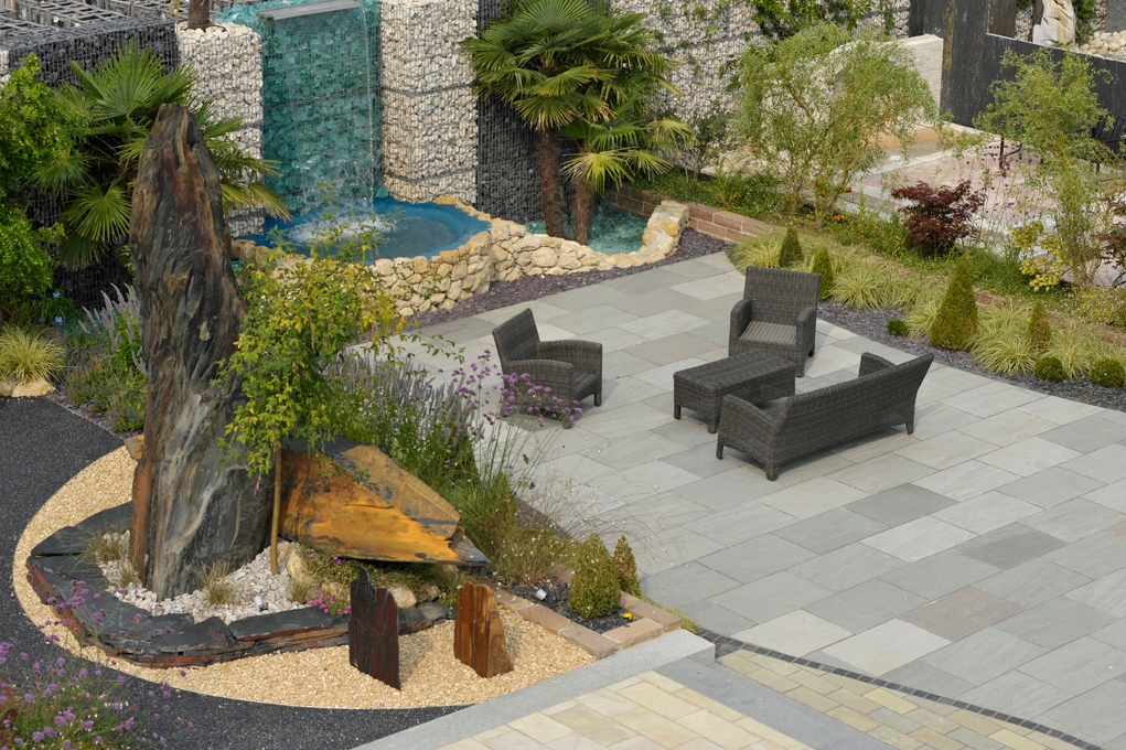 - Застосування = Габіони, Вази, Сади зі скла, Дизайн інтер’єру, Садовий декор