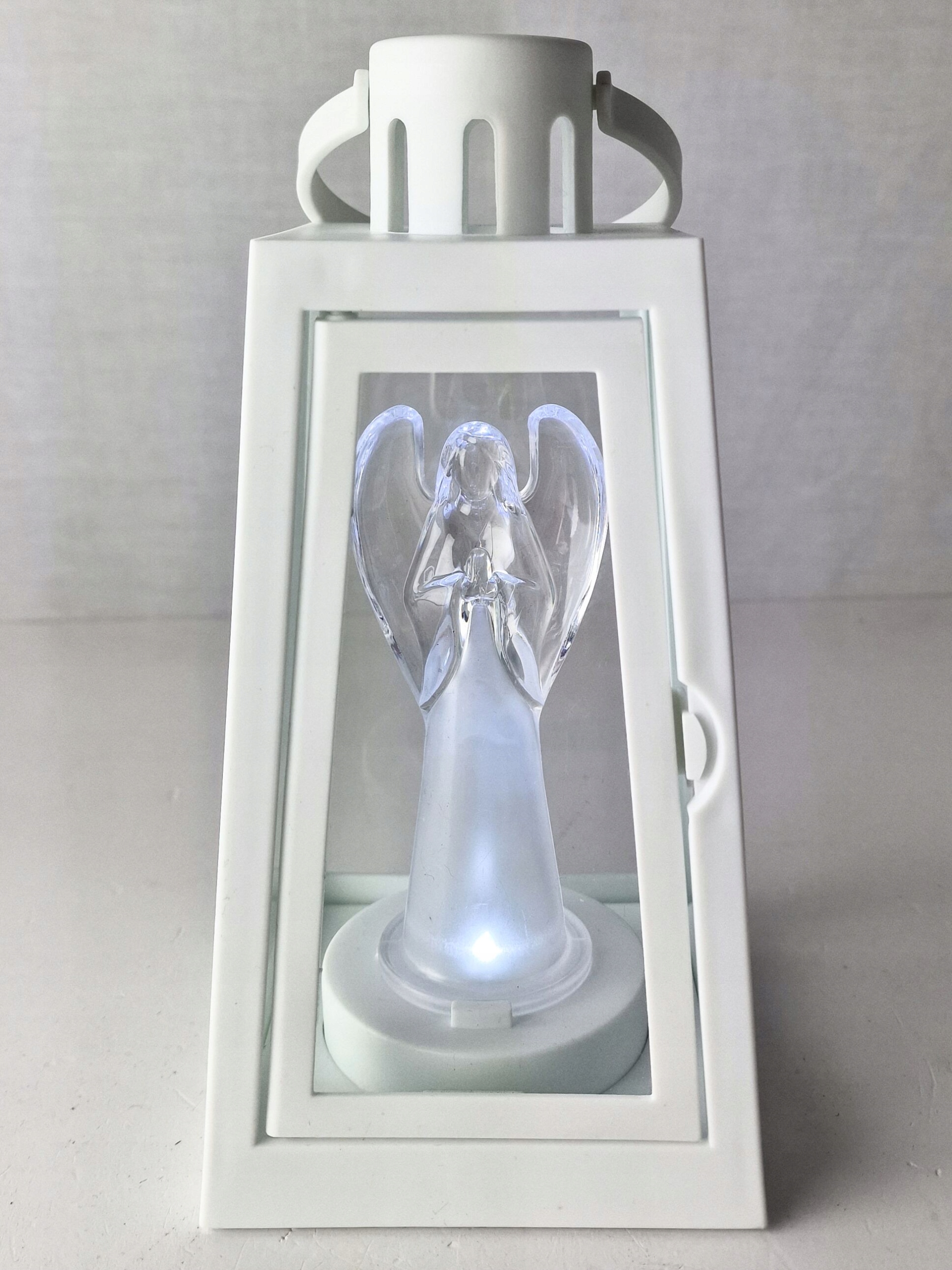 БІЛИЙ ДЕКОРАТИВНИЙ ЛІХТАР ЗІ СВІТОДІОДНИМ АНГЕЛОМ
