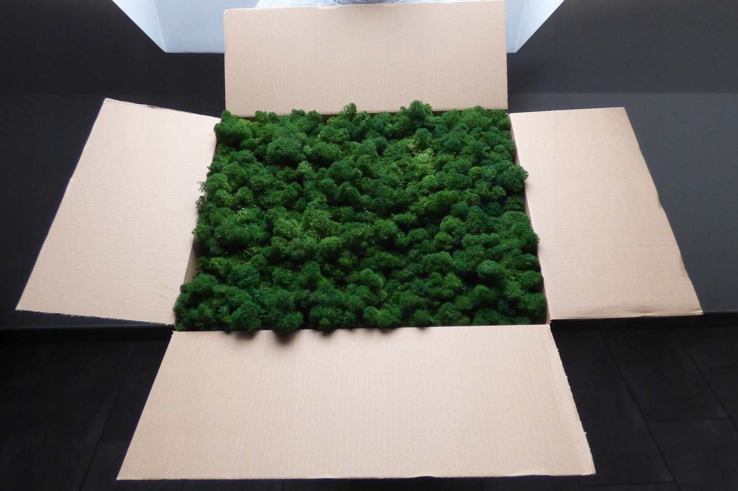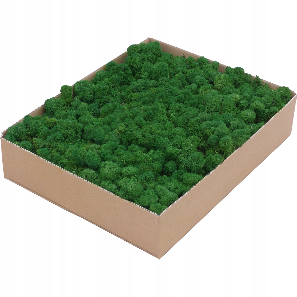 Темно-зелений хроботек із кольором пляшки у відтінок красивого темно-зеленого лісу. Якісний лишайник, з малою кількістю домішок у структурі. Товар упакований в картонну коробку по 1 кг в один шар, естетично оформлений. Мох чистий і готовий до роботи після вилучення з коробки. Вихід однієї 1 кг коробки моху хроботка становить від 0,13 до 0,17 м2 площі поверхні (до 40x40 см).