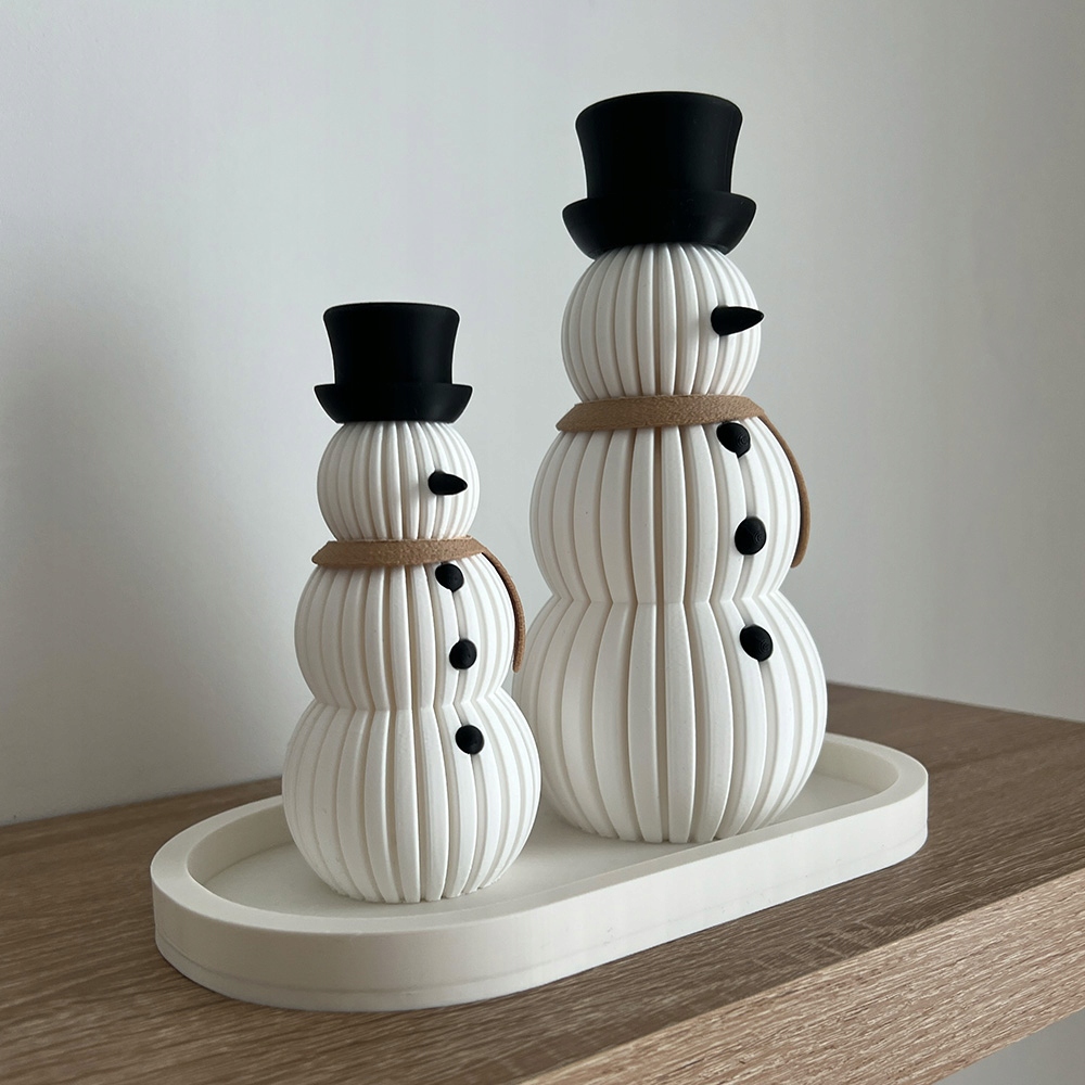 Внесіть у свій інтер'єр ніжну зимову атмосферу завдяки елегантним фігуркам сніговиків, виготовленим за технологією 3D-друку. Це поєднання класичної зимової символіки з сучасним дизайном, який вражає своєю простотою форми та увагою до деталей.
