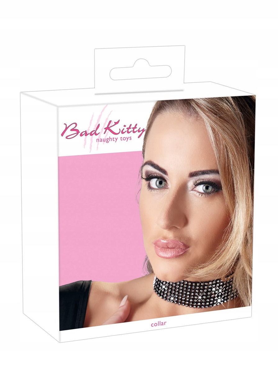 Комір чорного кольору, який має широку передню частину, покриту кристалами. На більш тонкій лямці ззаду є застібки для кріплення та регулювання коміра (окружність від 25 до 42 см). Матеріал: синтетика