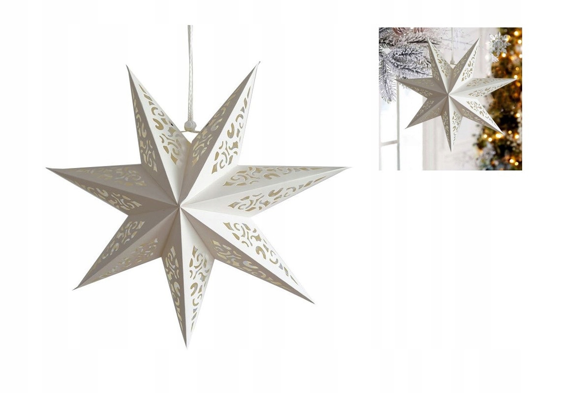 ЗІРКА З ДЕКОРАТИВНОГО ПАПЕРУ, ВІЗЕРУНОК ВИТРАЖ 2 - АЖУР - БІЛА - 60 СМ