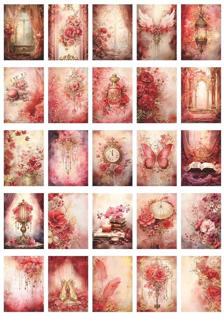 ДЕКОРАТИВНИЙ ПАПЕР ДЛЯ СКРАПБУКІНГУ 50 АРКУШІВ КВІТИ ВІНТАЖ