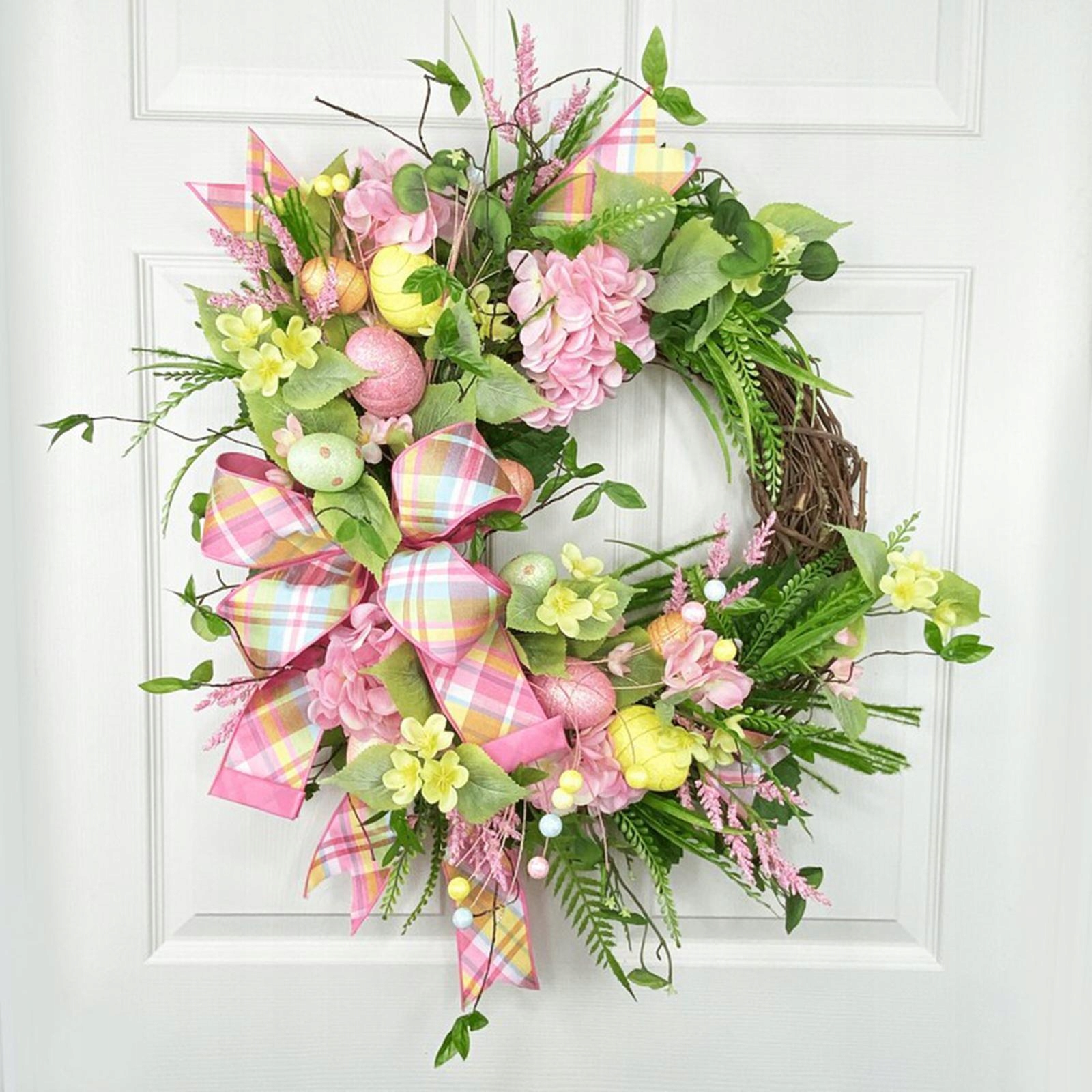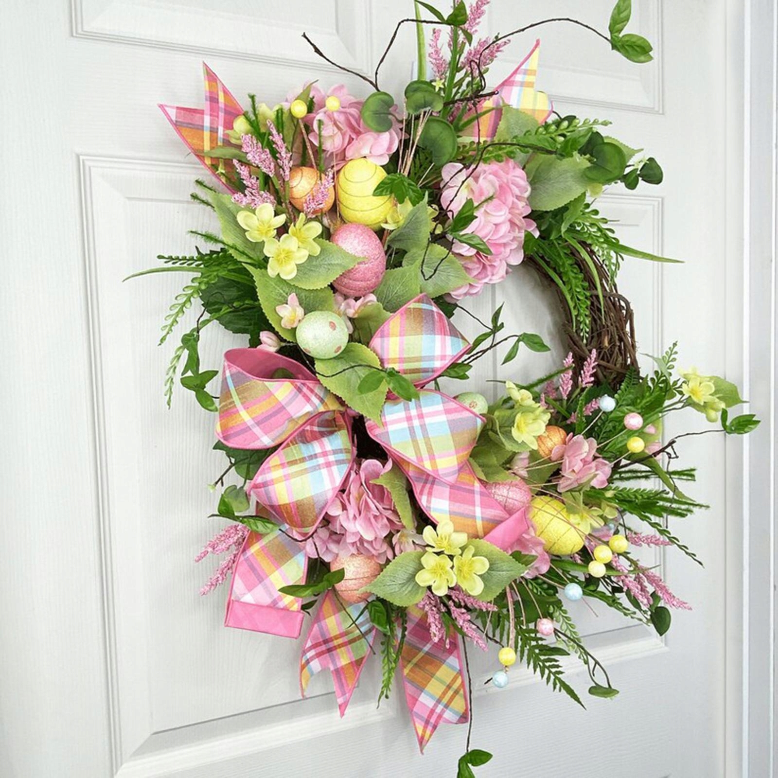 [Легко]. підтримувати]: Штучні великодні вінки, квіти ніколи не в’януть і не падають, і виглядають красиво, яскраво, реалістично та реалістично.