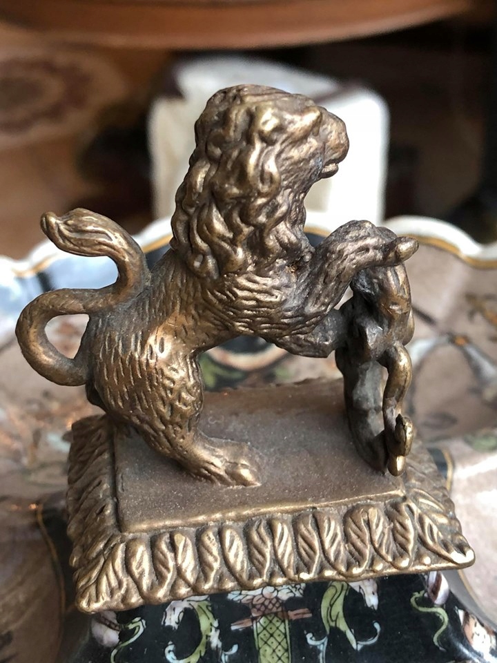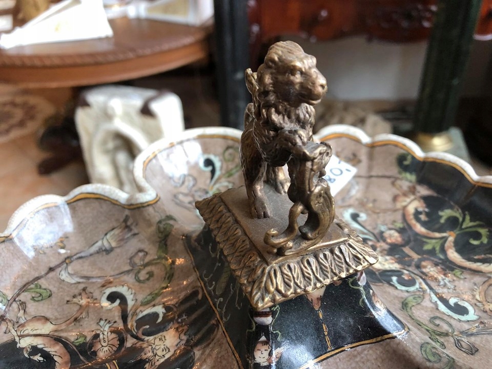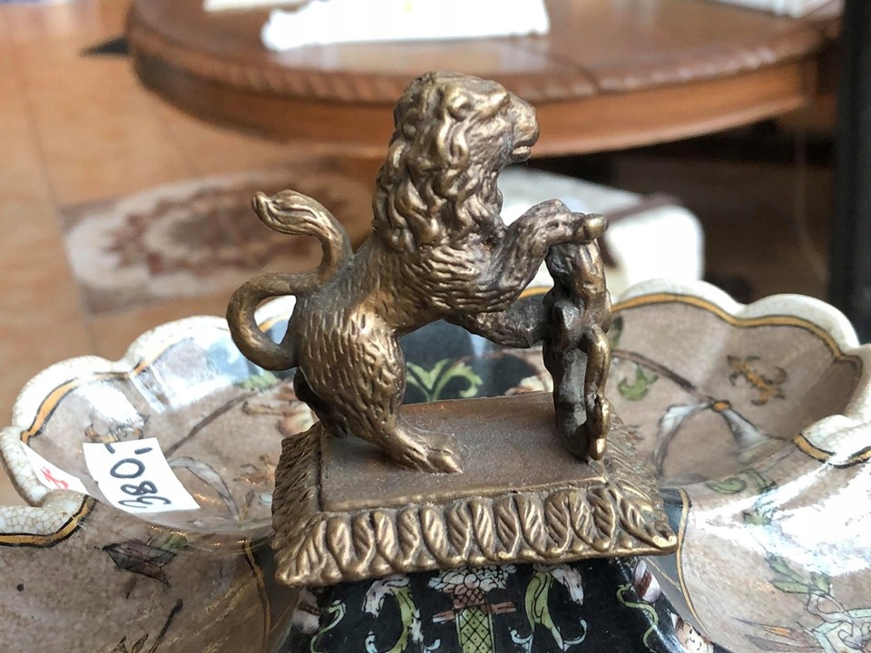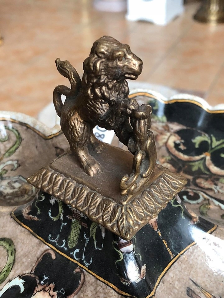 ВИГОТОВЛЕНИЙ З ФОРФОРУ З РУЧКОЮ ФІГУРКИ ЛЕВА ОТ БРОНЗИ