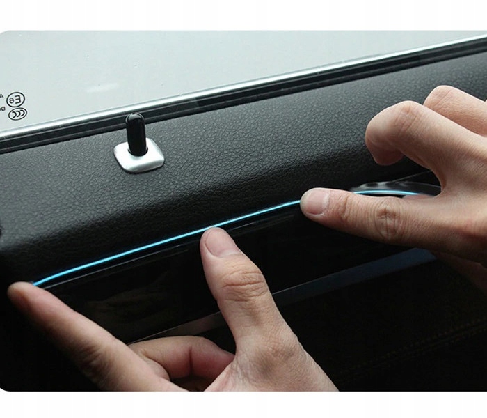 гнучка освітлювальна планка для освітлення внутрішнього внутрішнього автомобіля. Він використовує електролюмінесцентну технологію світла - вона дає лінійне, не розчиняючи світло, яке не втомить очі вночі. El Wire має спеціальний комір, який дозволяє встановити в оббивках або приладовій панелі. Він споживає мінімальну кількість електроенергії. Ремінь гнучка, його плоска частина (комір) використовується для введення в прогалини пластмас, оббивка або домашні меблі. Для належної роботи конвертер 12В - інвертор, доступний в окремої пропозиції. 1-2 мм