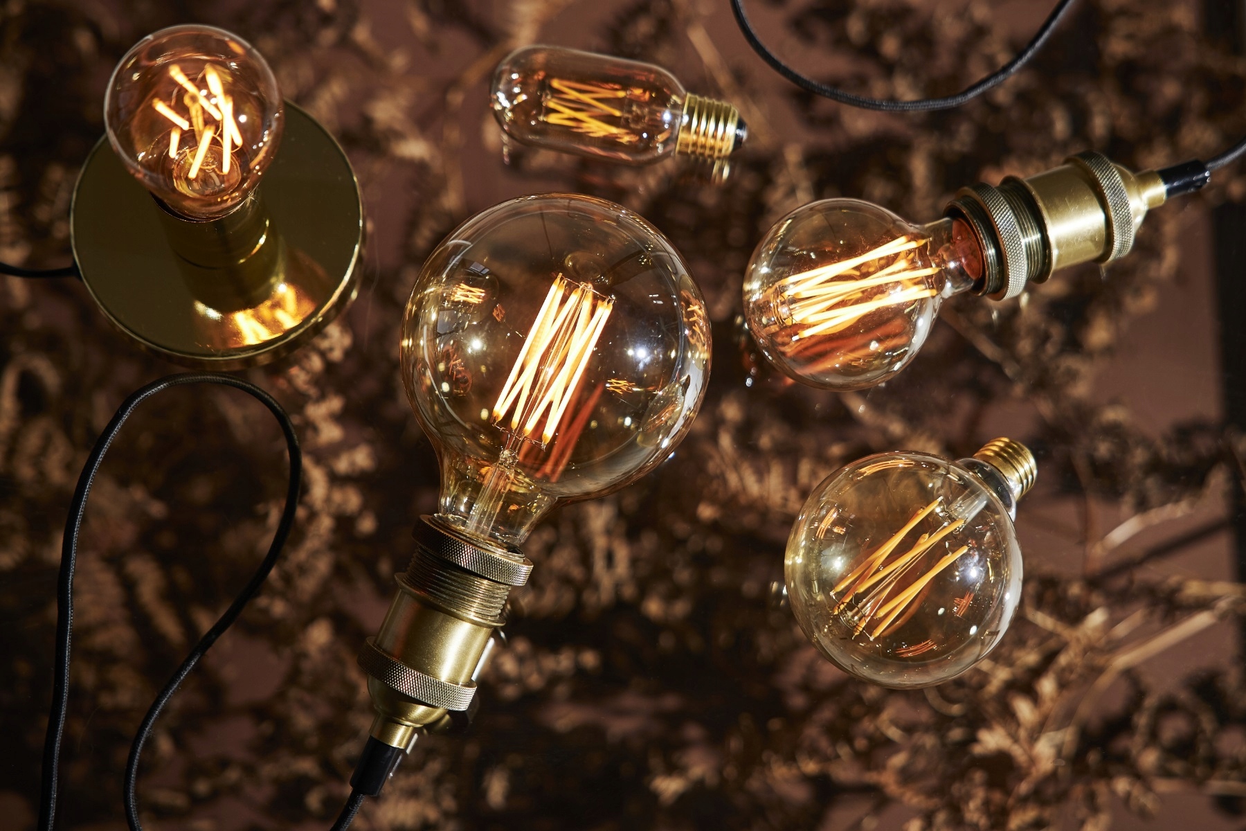Декоративний шнур з текстильним обплетенням і металевим цоколем Е27 кольору латуні.