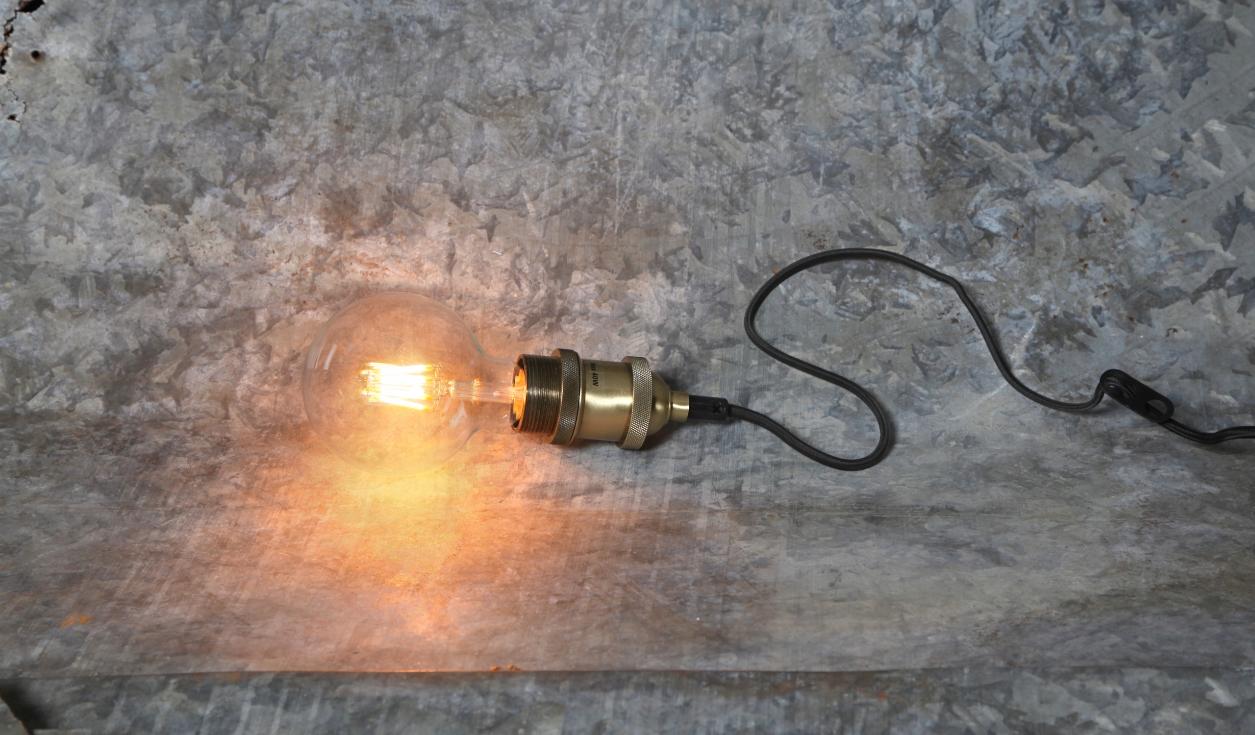 Декоративний шнур з текстильним обплетенням і металевим цоколем Е27 кольору латуні.
