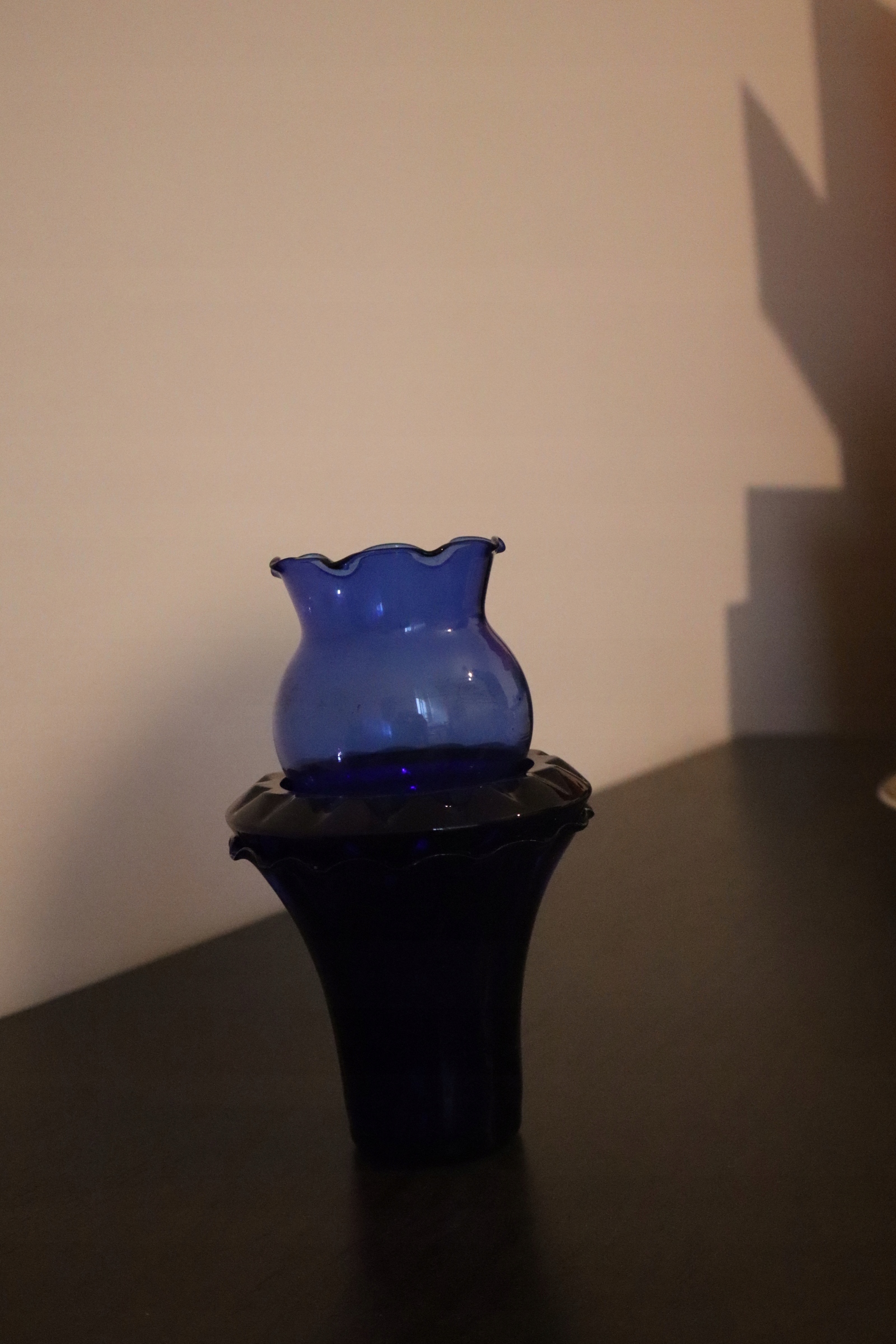 Пропонуємо до продажу декоративну лампу з тонованого синього скла. Тонка, елегантна форма та ніжно хвилястий край надають йому позачасового та декоративного характеру. Світильник стане ідеальним атмосферним елементом декору вітальні, спальні або інтер’єрів, оформлених у вінтажному та ретро стилі.