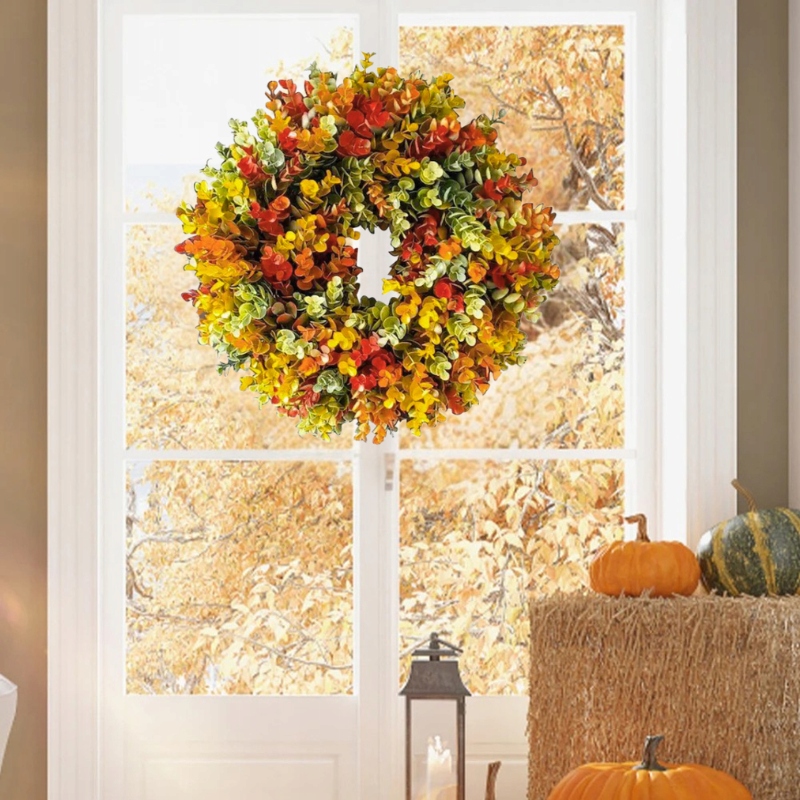 ✔ Купівля цього продукту, ви готуєте Осінній декоративний вінок з листям евкаліпта, який можна негайно повісити на двері, стіну або використаний як прикраса столу. сезонний.