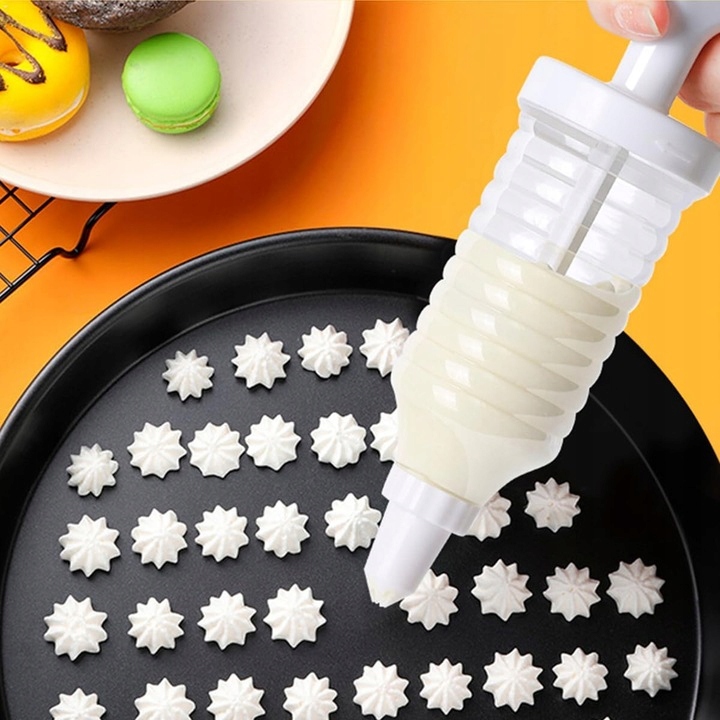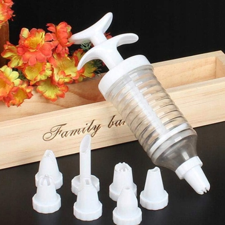 з нашим шприцом -дорогим тортим та тортами, кожна випічка стане невеликим витвором мистецтва! Оснащений 8 взаємозамінними порадами , дозволяє створювати красиві дизайни, які підкреслюватимуть смак та естетику ваших десертів.