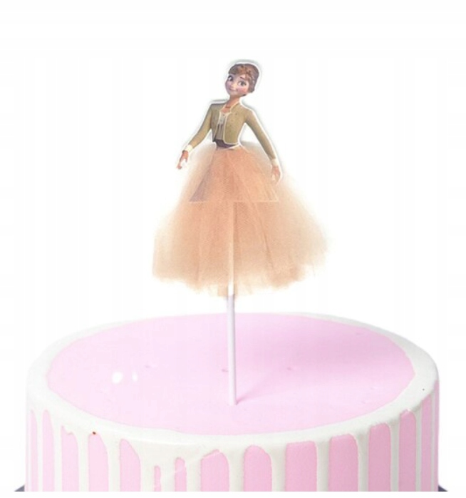 Предметом аукціону є 1 прикраса для торта у формі героїні казки Холодне серце, яка зображена на фото нижче з персиковою спідницею з фатину. Прикраса одностороння.