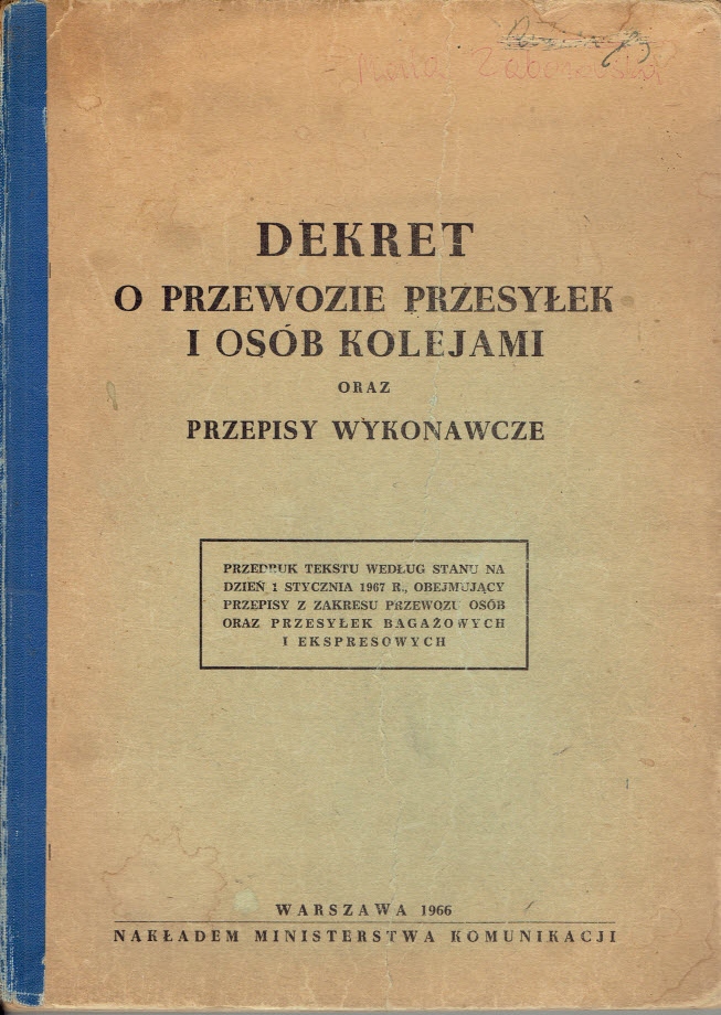 DEKRET O PRZEWOZIE PRZESYŁEK I OSÓB KOLEJAMI