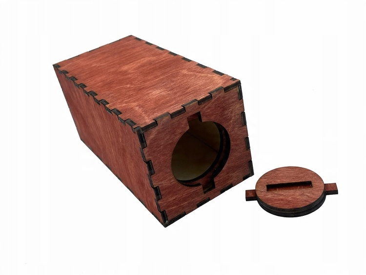 Естетична дерев'яна скарбничка з березової фанери. На відміну від скарбничок наших конкурентів, у нашій є можливість відкривати її та виймати зібрані гроші – вона має закривання. Все зроблено з дерева, навіть закриття. Відтепер не потрібно знищувати скарбничку, коли вона повна. Ще однією перевагою виробу є те, що він ідеально підходить для декорування в стилі декупаж.
