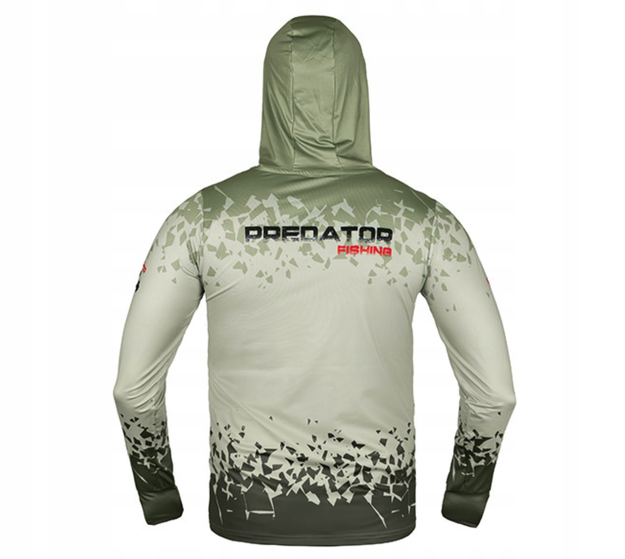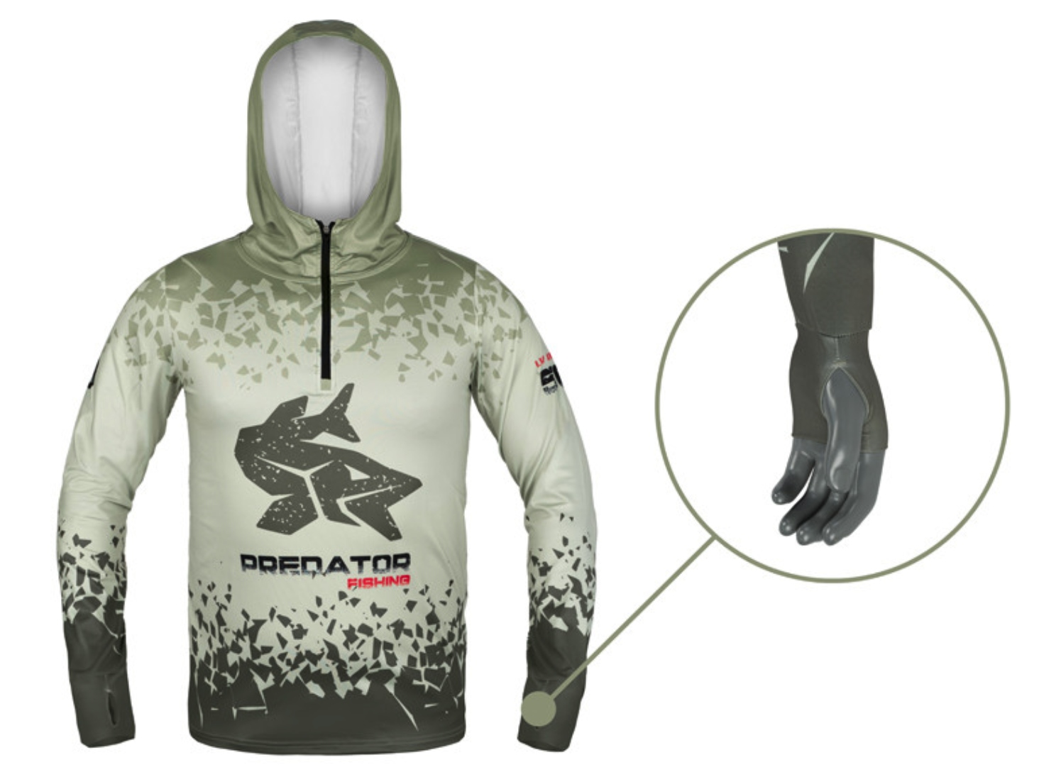 Ми також взяли до уваги найбільш вразливу частину тіла - голови. Т -сорочка оснащена значно підвищеним коміром та капюшоном, а також розширеними рукавами з великими пальцями, що збільшує захист від руки. Великою перевагою зручного, гнучкого матеріалу є його здатність швидко висохнути, коли ви змочете під час риболовлі.