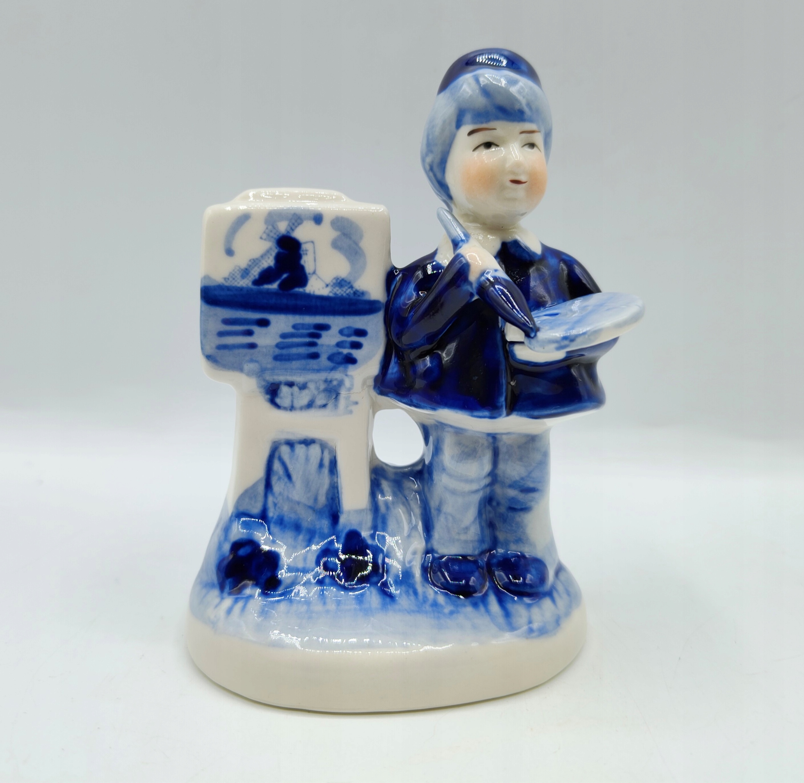 вінтаж, художник, хлопчик, підписана статуетка, дельфт, кобальт під склінням