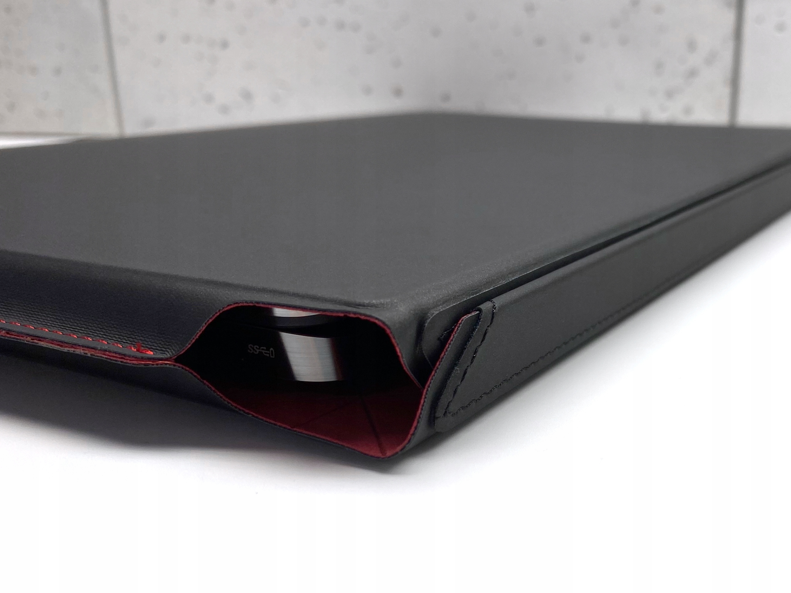 Обкладинка щільно прилягає до блокнота, бічні сторони сильно посилені. Магнітна застібка запобігає випадковому видаленню. Компанія Dell подбала про те, щоб шви та підкладка були зроблені таким чином, щоб забезпечити максимальну міцність і захист ноутбука, який переноситься.