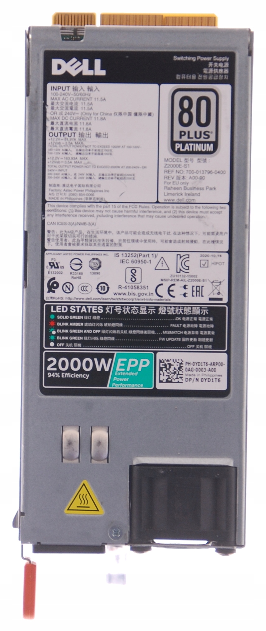 DELL 2000W POCEPER Z2000E-S1 0YD1T6 POWEREDGE R630 R730 T430 T630