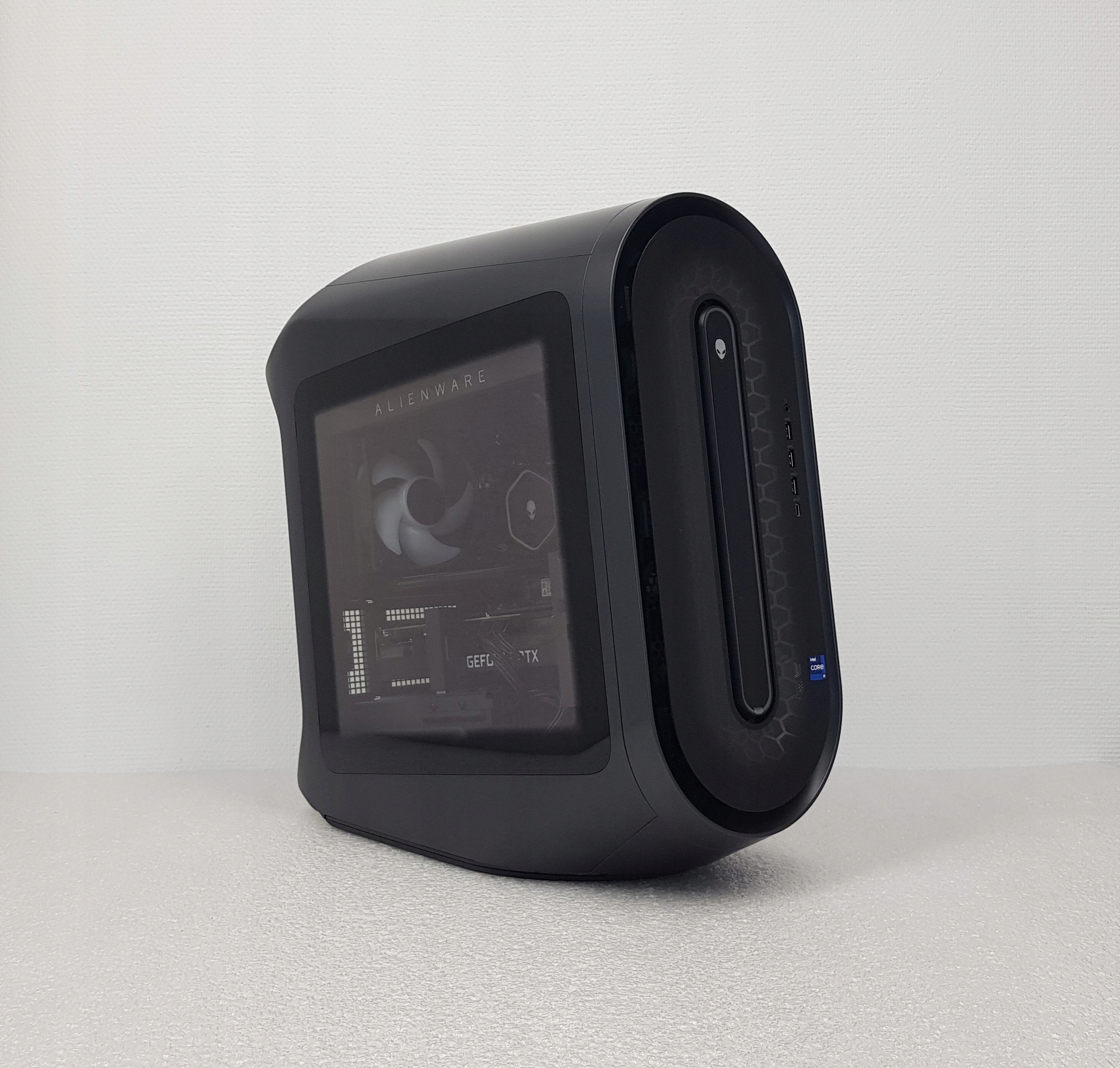 Розроблений, щоб виглядати максимально елегантно як зсередини, так і зовні, настільний комп’ютер Aurora постачається з додатковою прозорою боковою панеллю, яка має захист від електромагнітних перешкод і стійкість до подряпин. Ця панель пропонує вікно в організований інтер’єр, освітлений технологією AlienFX, де геймери можуть побачити високопродуктивні компоненти та нову темну материнську плату, розроблену зі стилем і продуктивністю, що дозволяє прокладати кабелі там, де це необхідно.