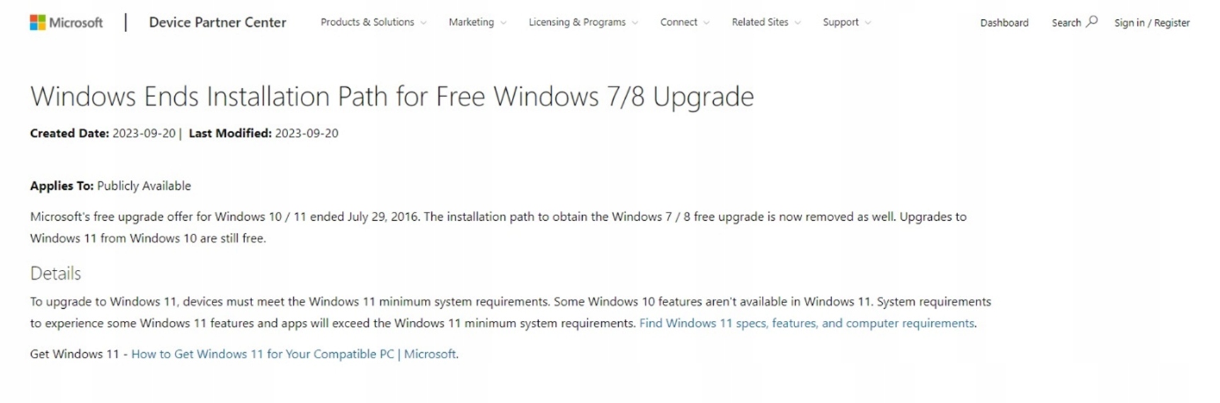 На офіційному веб-сайті Microsoft технологічний гігант оголосив, що видалив можливість безкоштовного оновлення Windows 7/8 до останньої версії операційної системи Windows 10/11.