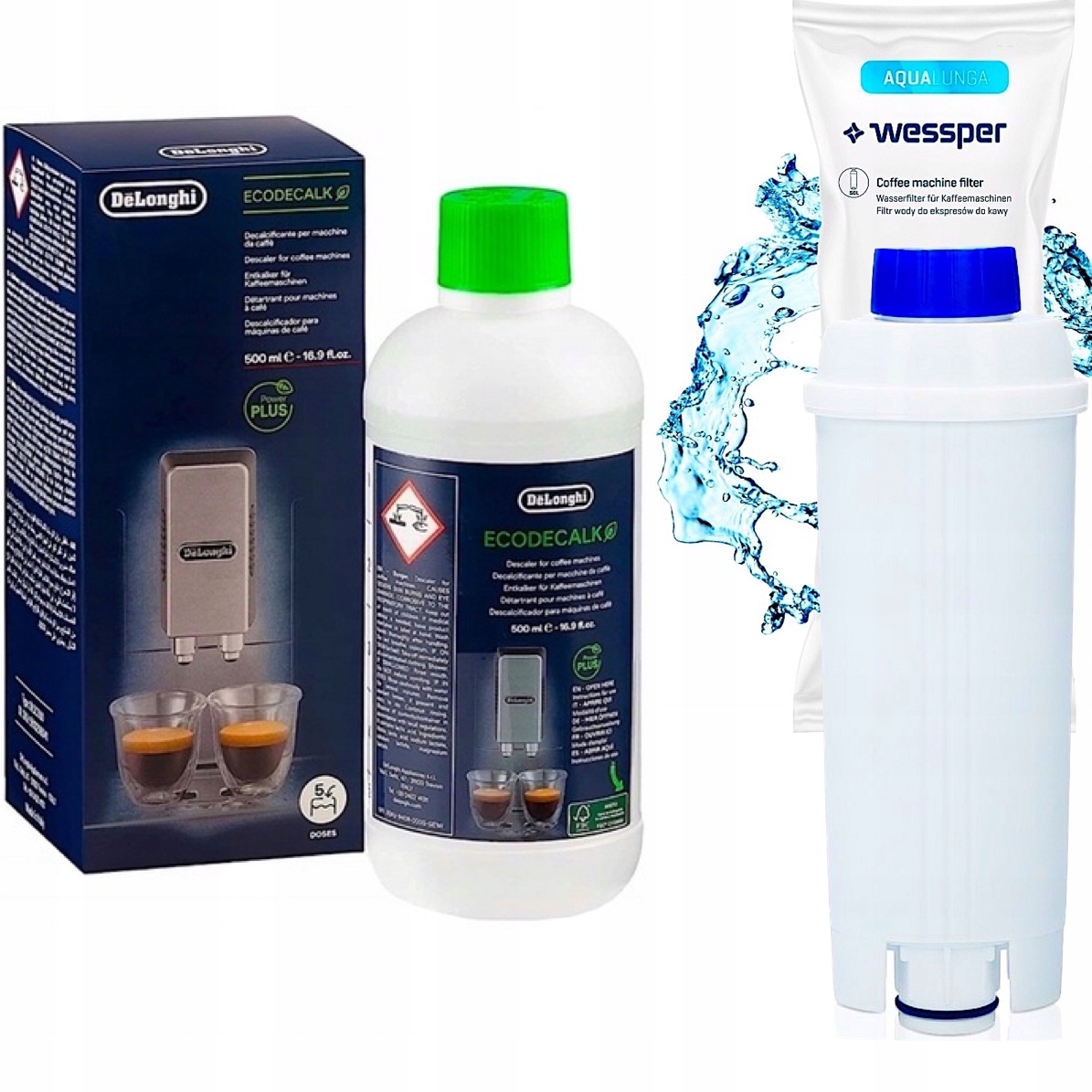 DeLonghi DESCALER 500мл + 2x фільтр Wessper AquaLunga для кавоварки