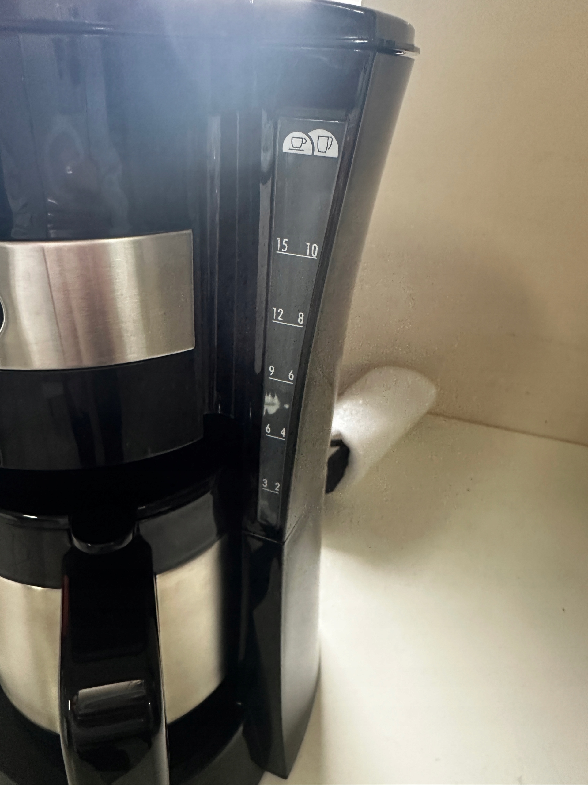 - оснащений тепловим глечиком з ергономічною ручкою, дисплеєм, 24-годинним таймером, ароматною функцією та індикатором рівня води.