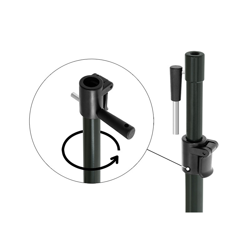 Легко вставати в землю, а свердло в кінці опори дозволяє йому накрутити його навіть у тверду поверхню . Палиця виготовлена з алюмінієвої труби для задоволення складних умов та збільшення довговічності.