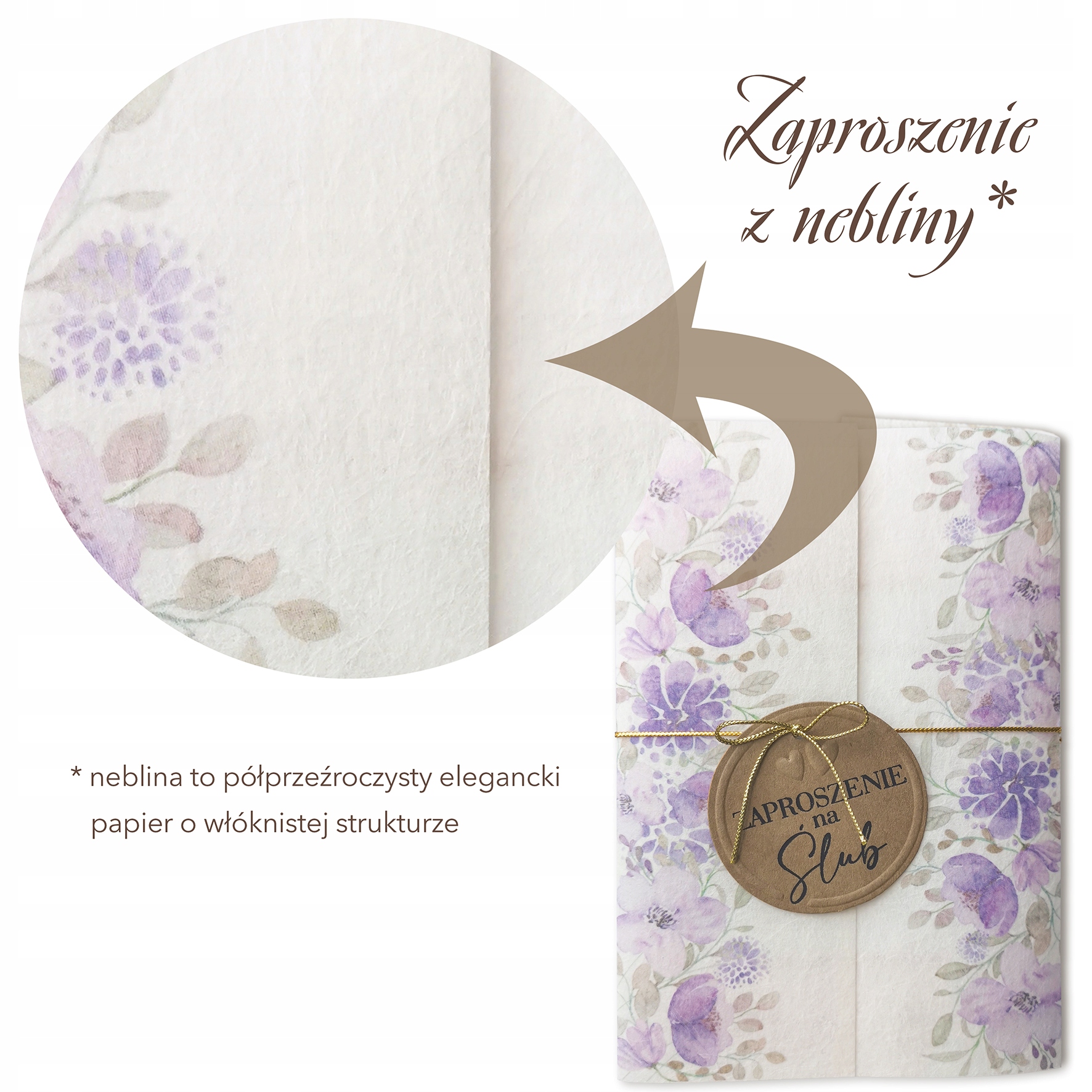 В набір входить: 1x запрошення, 1x конверт, золота нитка (зав’язана ) з підвіскою