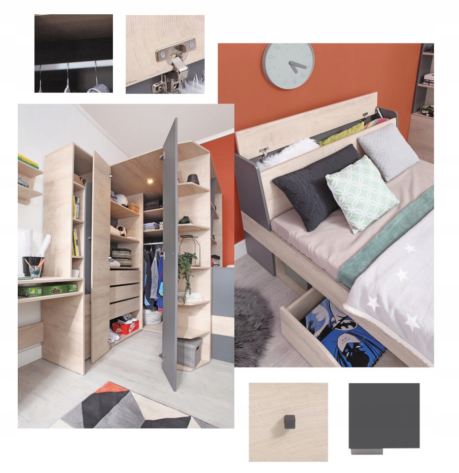 delta_Z07- Набір меблів для молодіжної кімнати, гардеробу, столу, шафи для книг, комодів та підвісної полиці