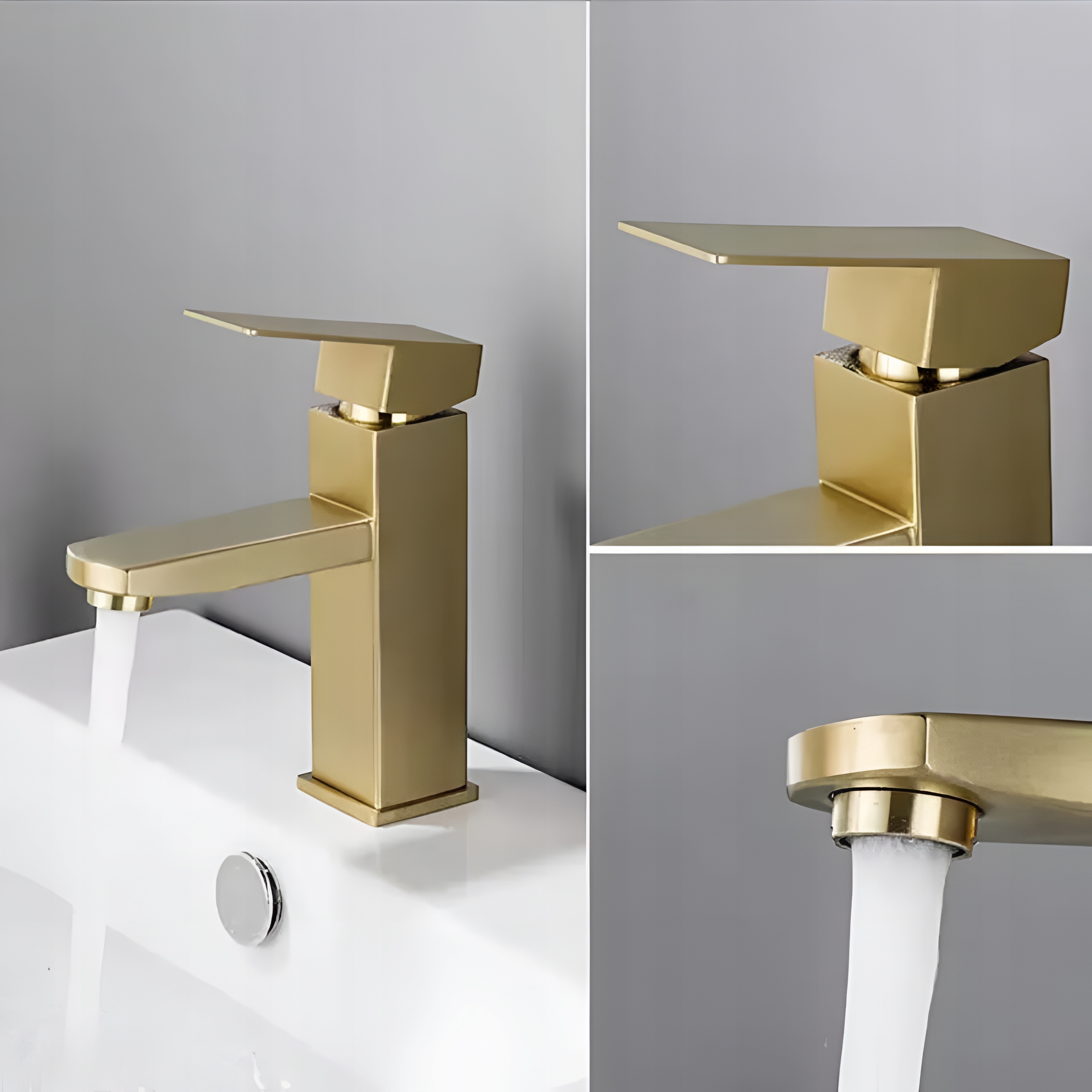 DELVANT КВАДРАТНИЙ УМИВАЛЬНИК ДЛЯ ВАННОЇ З НИЗЬКОЮ СТРІЙКОЮ FATTER, ЗОЛОТО
