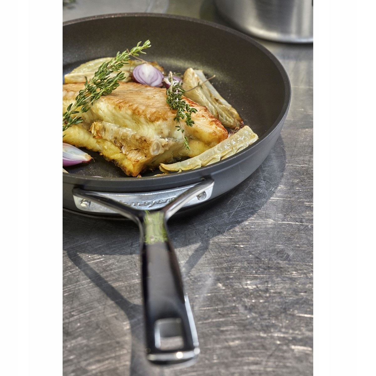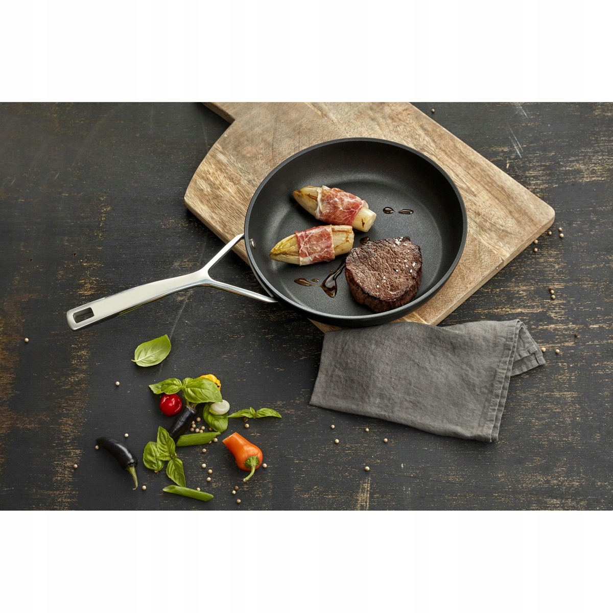 Глибока титанова сковорода Demeyere Alu Pro доступна в розмірі 28 см. Його холоднокована алюмінієва конструкція з дном 5 мм дозволяє рівномірно та швидко розподіляти тепло по всій поверхні, запобігаючи локальному пригоранню їжі. Використання спеціальної технології TriplInduc® дозволяє використовувати сковороду на всіх типах плит, але особливо на індукційних плитах, збільшуючи їх ефективність до 30 відсотків. Антипригарне покриття PTFE є міцним, стійким до подряпин і дозволяє здорово смажити з використанням невеликої кількості олії або жиру. Легка, зручна зварена ручка з нержавіючої сталі є довговічною та забезпечує комфорт навіть після тривалого використання. Унікальна глибока титанова сковорода Demeyere Alu Pro — ідеальний інструмент, який чудово підійде як на професійній ресторанній кухні, так і вдома, забезпечуючи безпечне, швидке, здорове та економічне приготування ваших улюблених делікатесів.
