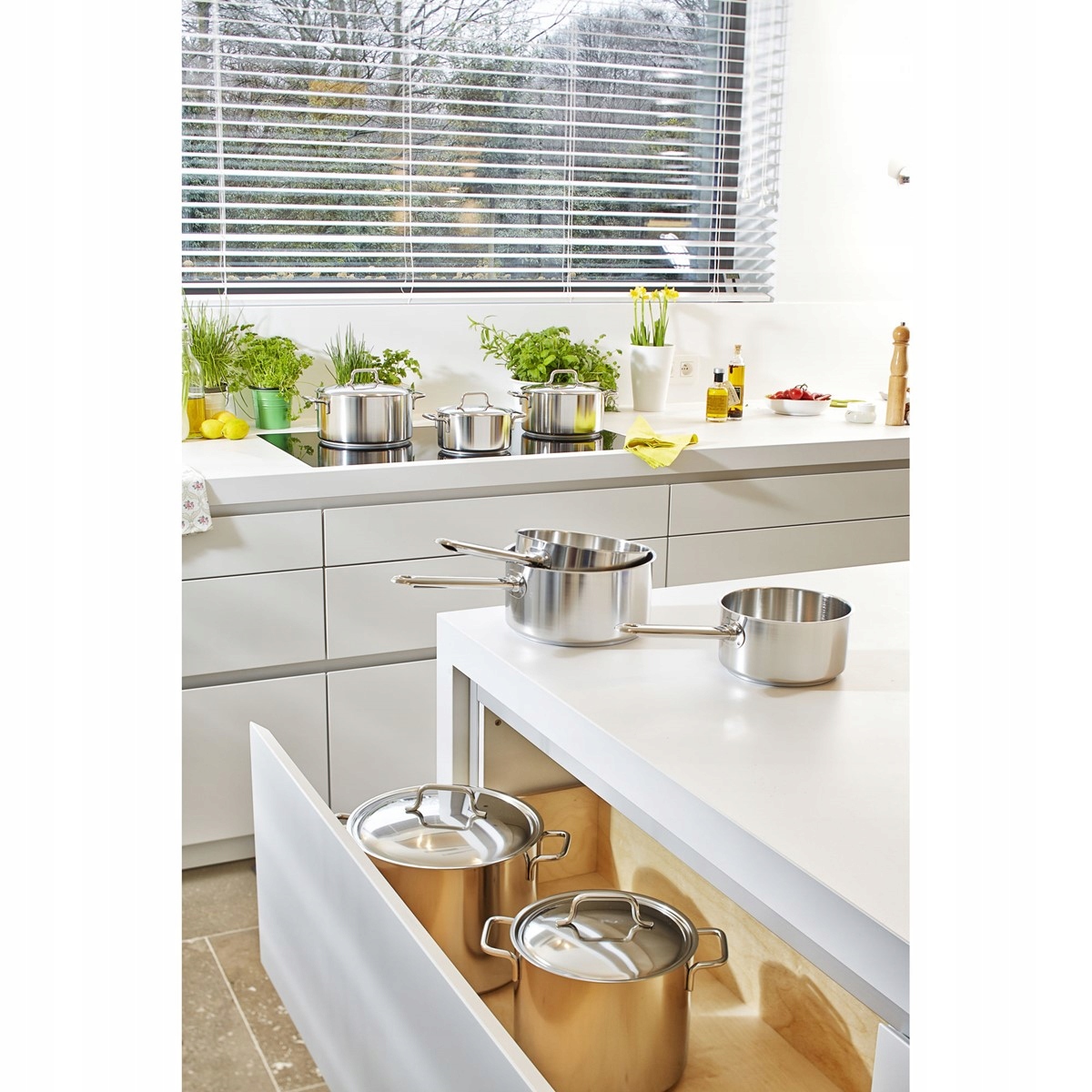 Пуристичний дизайн, красива, срібля-біла нержавіюча сталь та спеціальне покриття Silvinox® зроблять каструлю, однак, не тільки з корисністю, але і з виглядом дуже багато років. Ця характеристика для всієї серії означає, що ви уникнете знебарвлення та зупинки залишків їжі, а таким чином полегшить горщик у щоденному догляді та чистці.