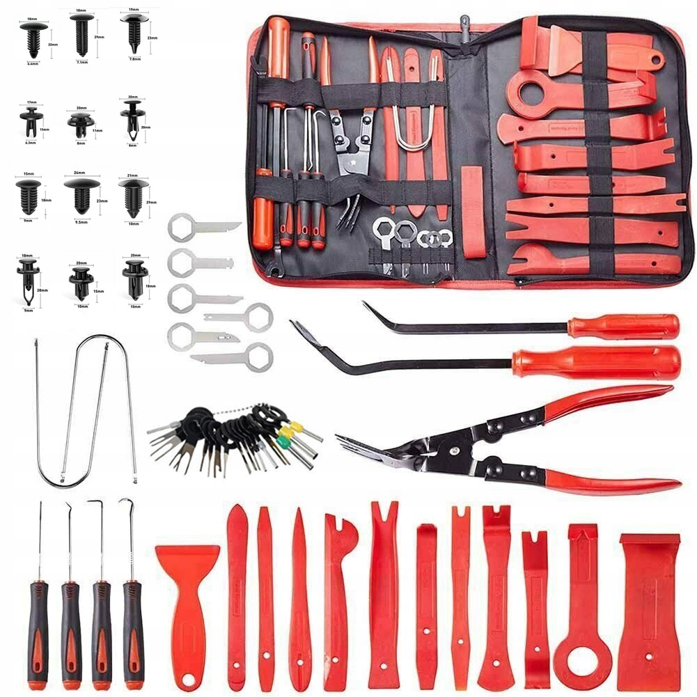 Цінний автомобільний набір інструментів, який задовольнить усі ваші потреби в обробці. Цей набір інструментів для демонтажу дверних панелей ідеально підходить для встановлення або демонтажу автомобільних аудіо/радіо/стереосистем, дверних панелей, молдингів, емблем, віконних молдингів, а також для внутрішнього/зовнішнього ремонту автомобіля та реставрації меблів.