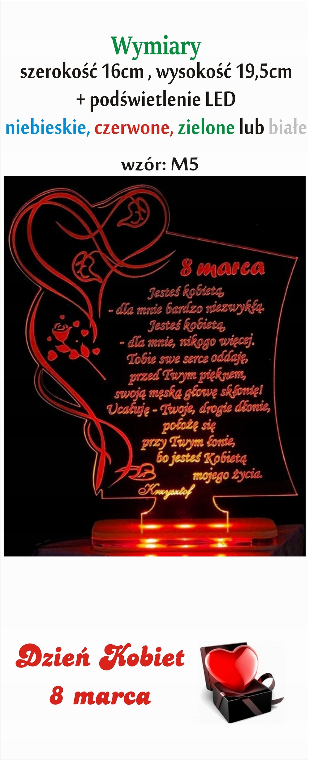 День жінок 8 березня освітлений LED Statuette