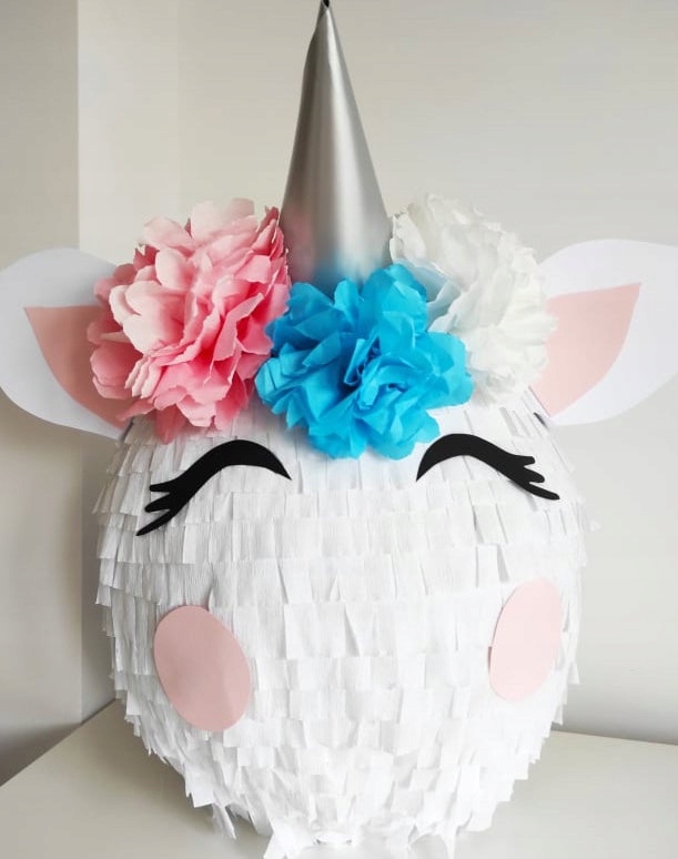 Piniata XXL UNICORN ЄДИНОРІГ ОГОЛОК 100 СМ. Кольори рогу та квітів можуть незначно відрізнятися в залежності від наявності матеріалів