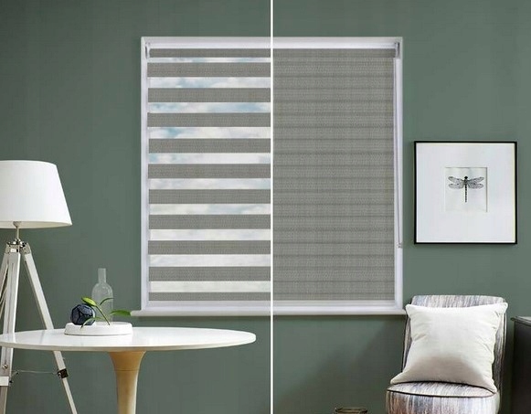 Настінні рулонні штори «День-ніч» – елегантне рішення для оформлення вікон. Завдяки використанню тканини, що складається з чергування горизонтальних смуг матеріалу та прозорої сітки, вони поєднують декоративні та функціональні властивості. Легке регулювання надходження сонячного світла дозволяє злегка затемнити, а якщо підняти всю рулонну штору, кімната може бути повністю освітлена сонцем. Настінні рулонні штори можна кріпити безпосередньо до стін або стелі.