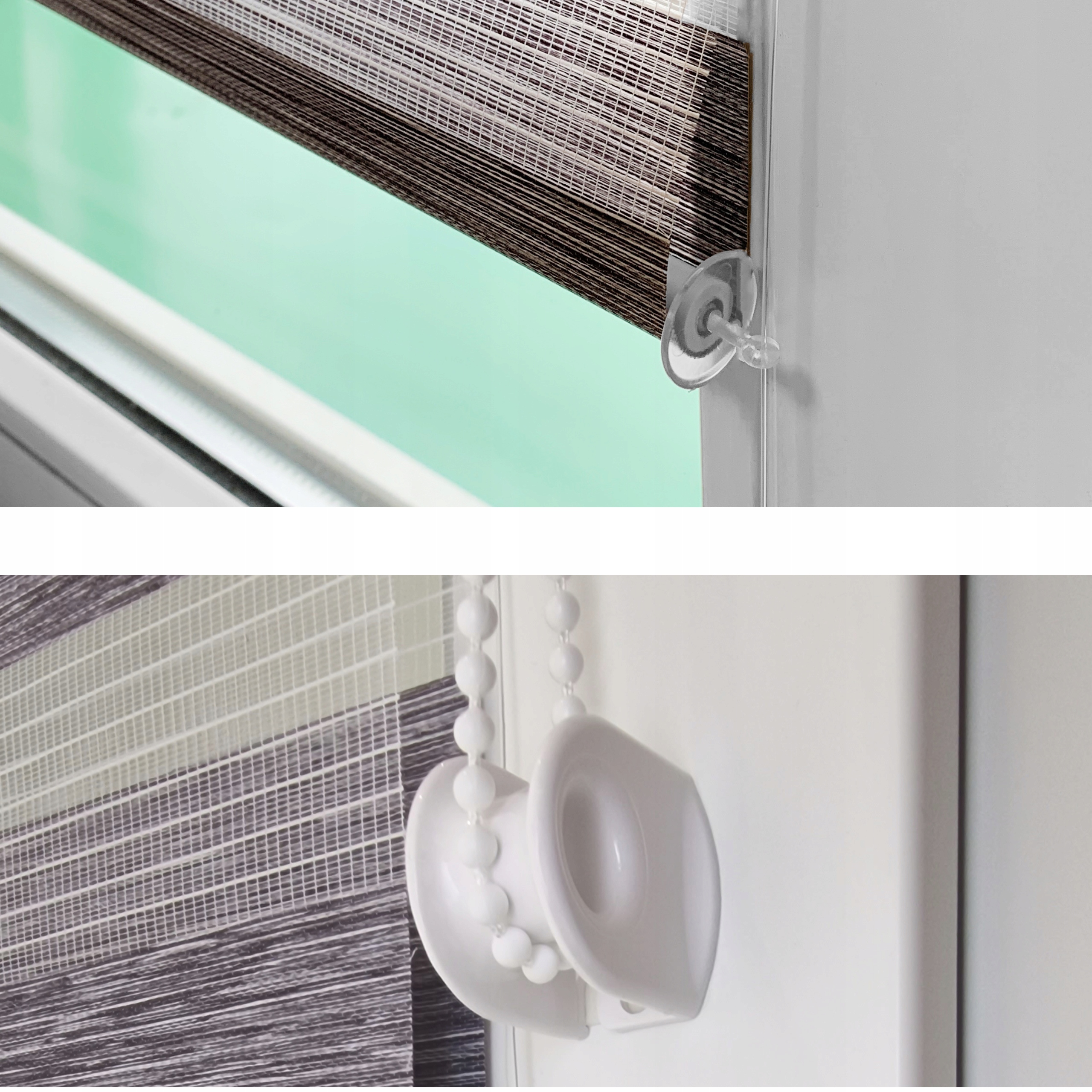 - Рулонна штора з тканини День Ніч, яку можна регулювати >кількість пропускання світла завдяки двом паралельним шарам матеріалу з чергуванням смуг (темні та прозорі)