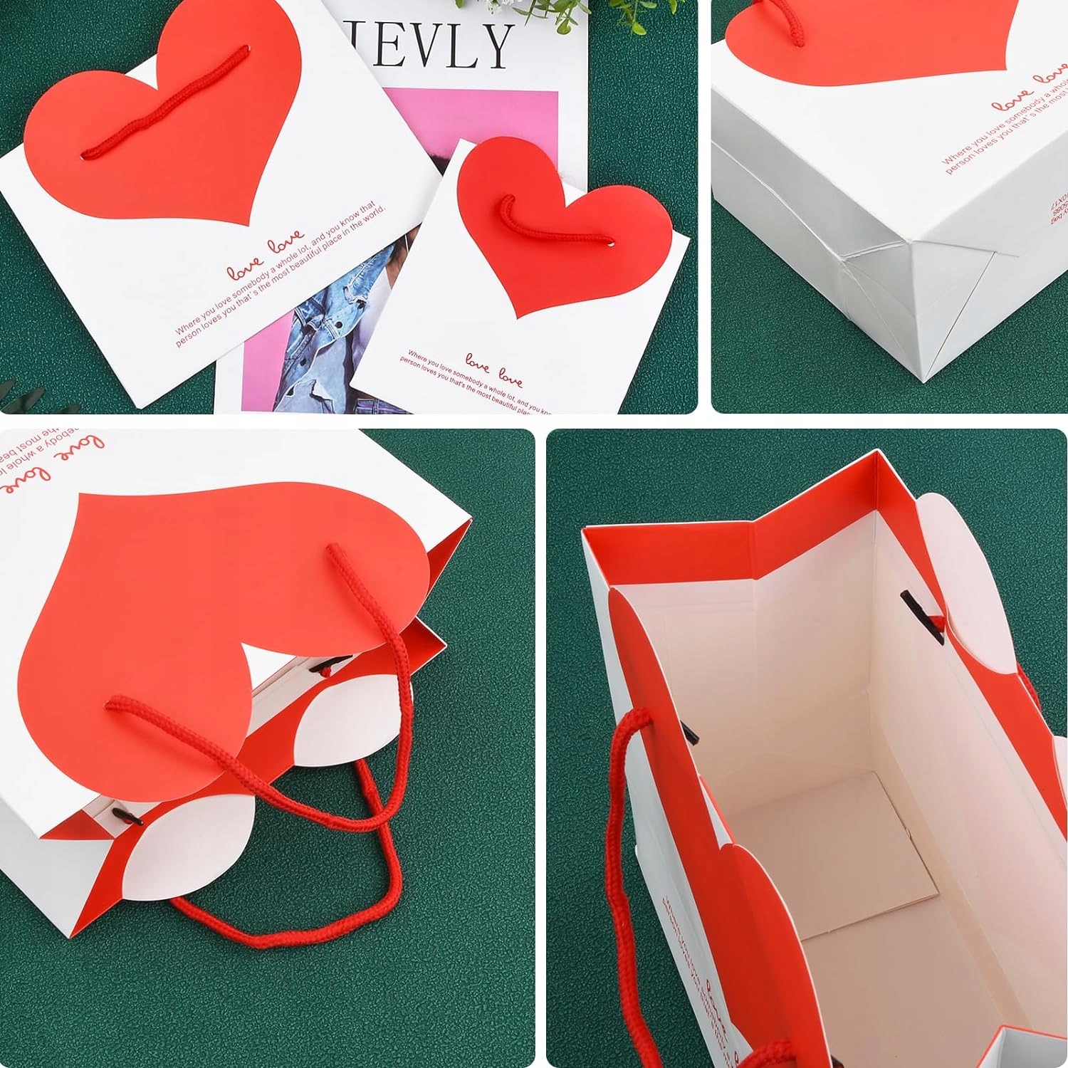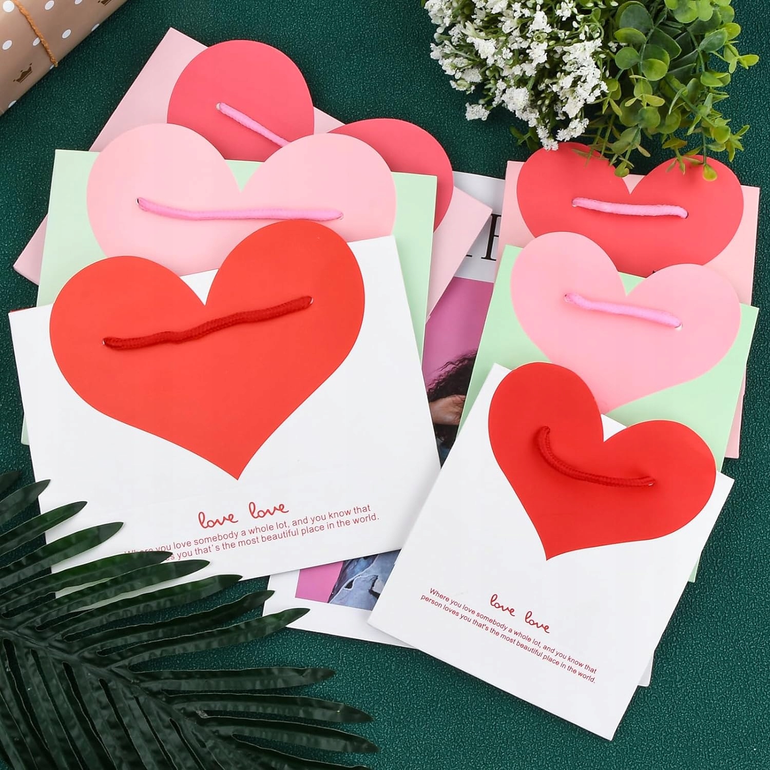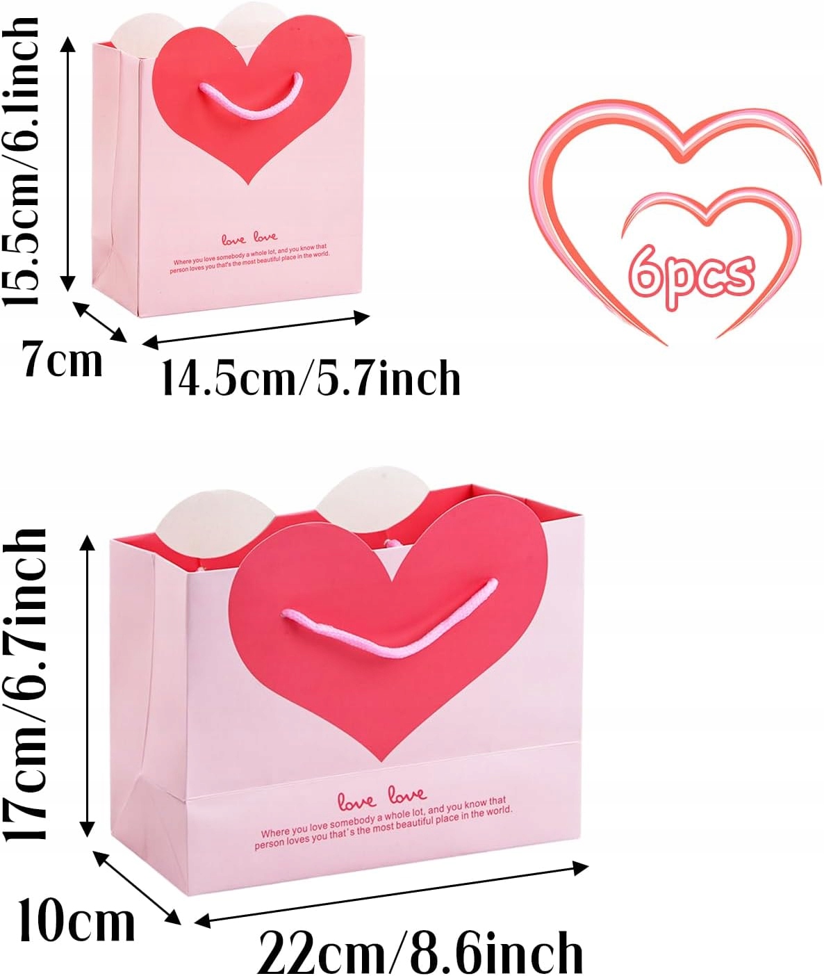 День Валентина - паперові пакети для подарунків, 6 штук, паперові пакети, один із родів, паперові пакети для солодощів, серце, подарункові пакети з ручкою, День Святого Валентина