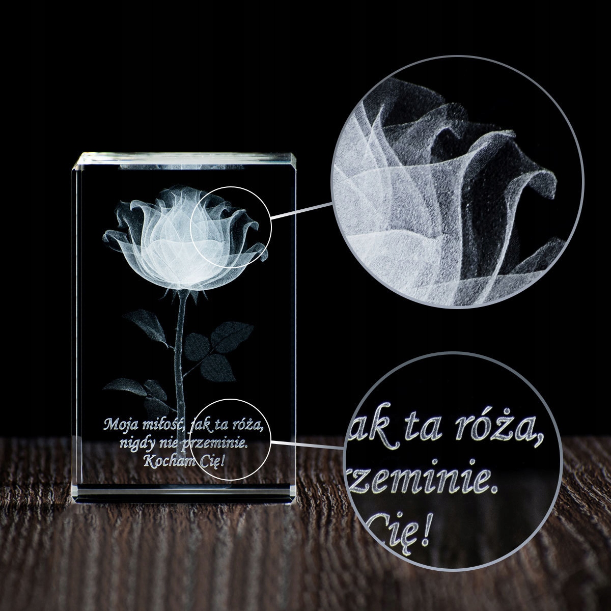 Якщо ви шукаєте унікальний подарунок для коханої людини, 3D-троянда з гравіюванням кришталь буде відмінним вибором. Ми вигравіруємо вашу присвяту під трояндою (входить у вартість) або скористайтеся нашою пропозицією. Кришталева статуетка упакована в елегантний футляр.