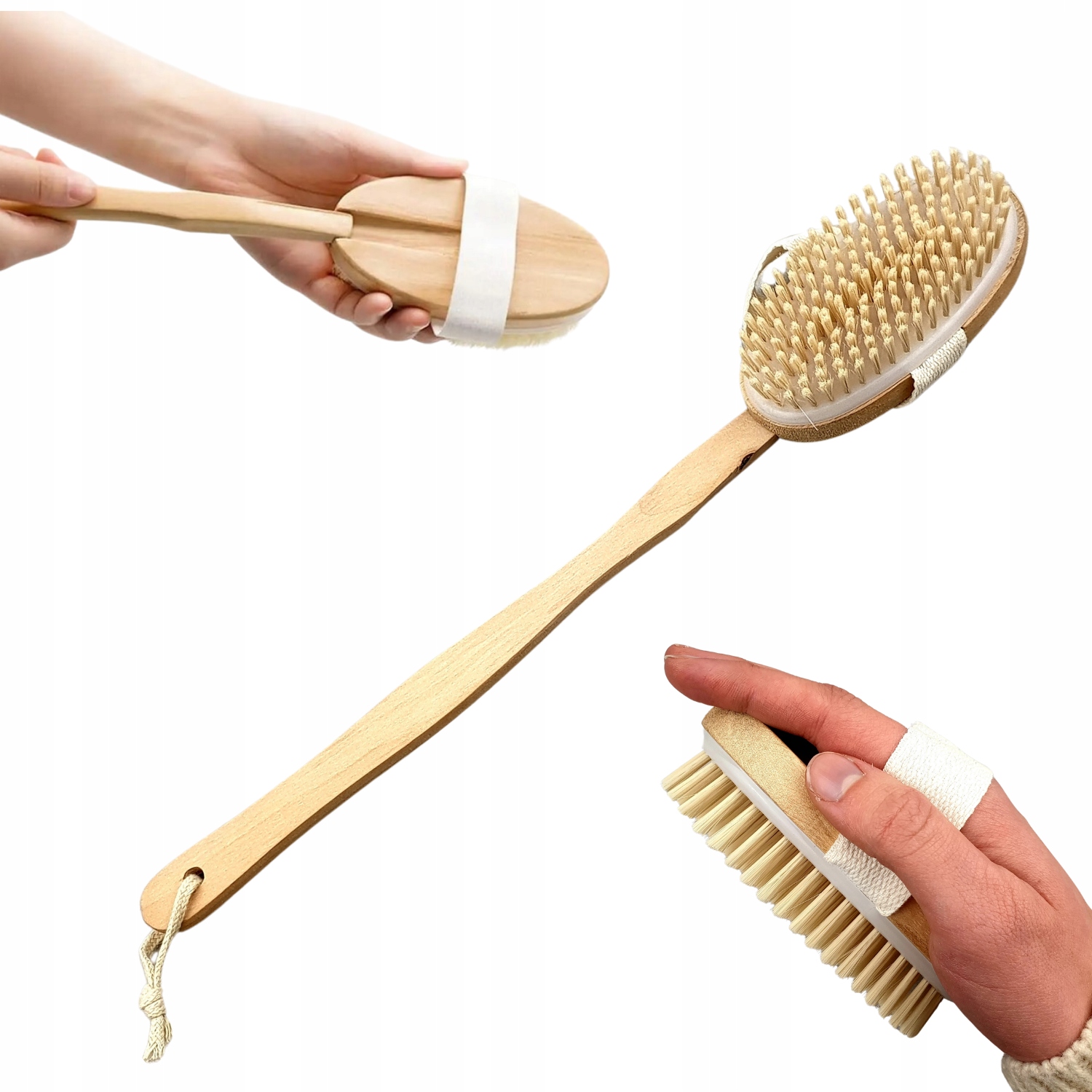 Довга дерев’яна ручка • Натуральна щетина • Щітка 2 в 1 для купання та сушіння