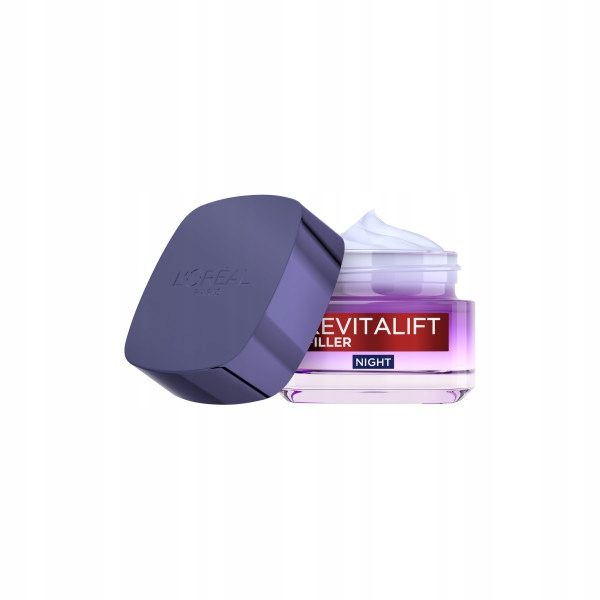 Нічний крем Revitalift Filler Anti-Age 40+ із формулою, збагаченою гіалуроновою кислотою та екстрактом калгану, забезпечує миттєвий зволожуючий ефект, надає шкірі відчуття свіжості, допомагає відновити її об’єм, усуває сліди від подушок та сприяє ефективному зменшенню зморшок.