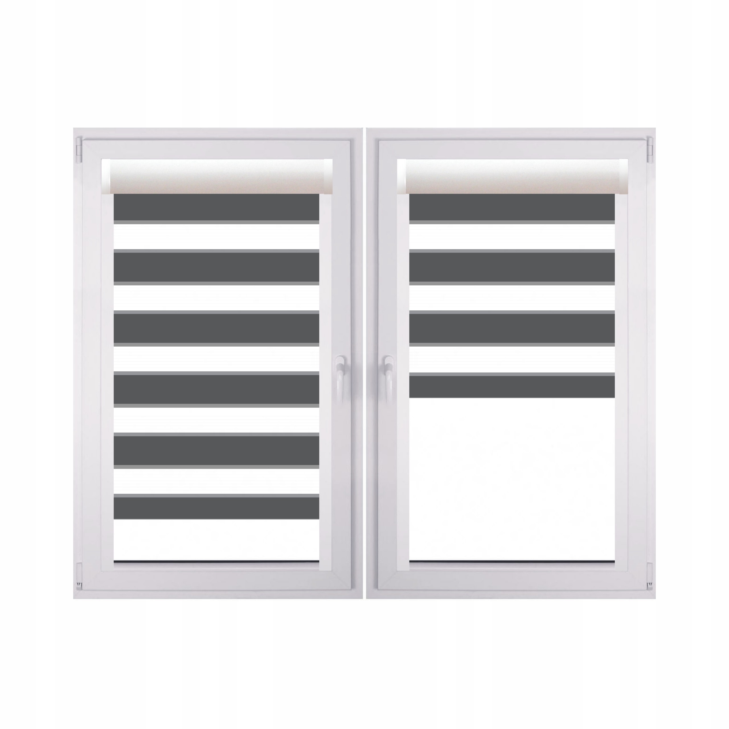 - Рулонні штори «День-ніч» ідеально підходять до вікон з ПВХ, алюмінію та алюмінію, дерев'яних, а після встановлення стають невід'ємною частиною вікна.