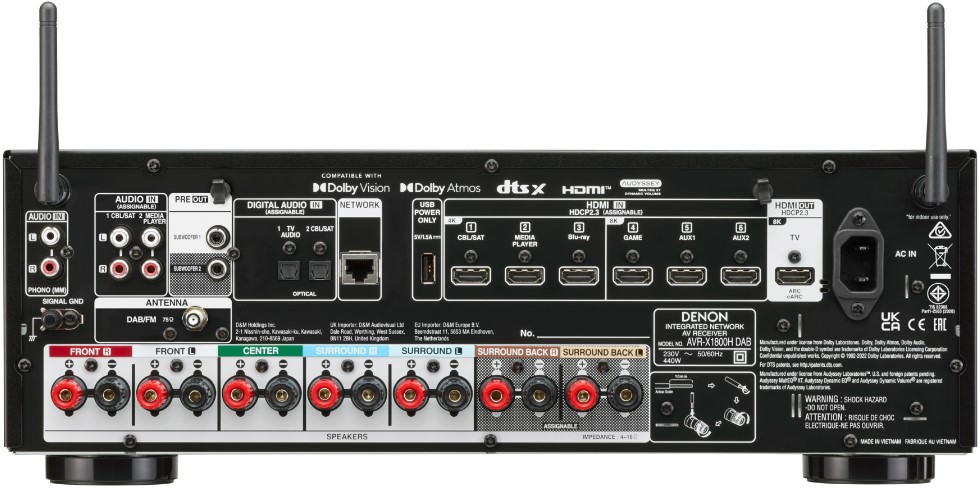 Denon AVR-X1800H DAB 7.2 DOLBY ATMOS DTS:X BT Wi-Fi приймач чорний