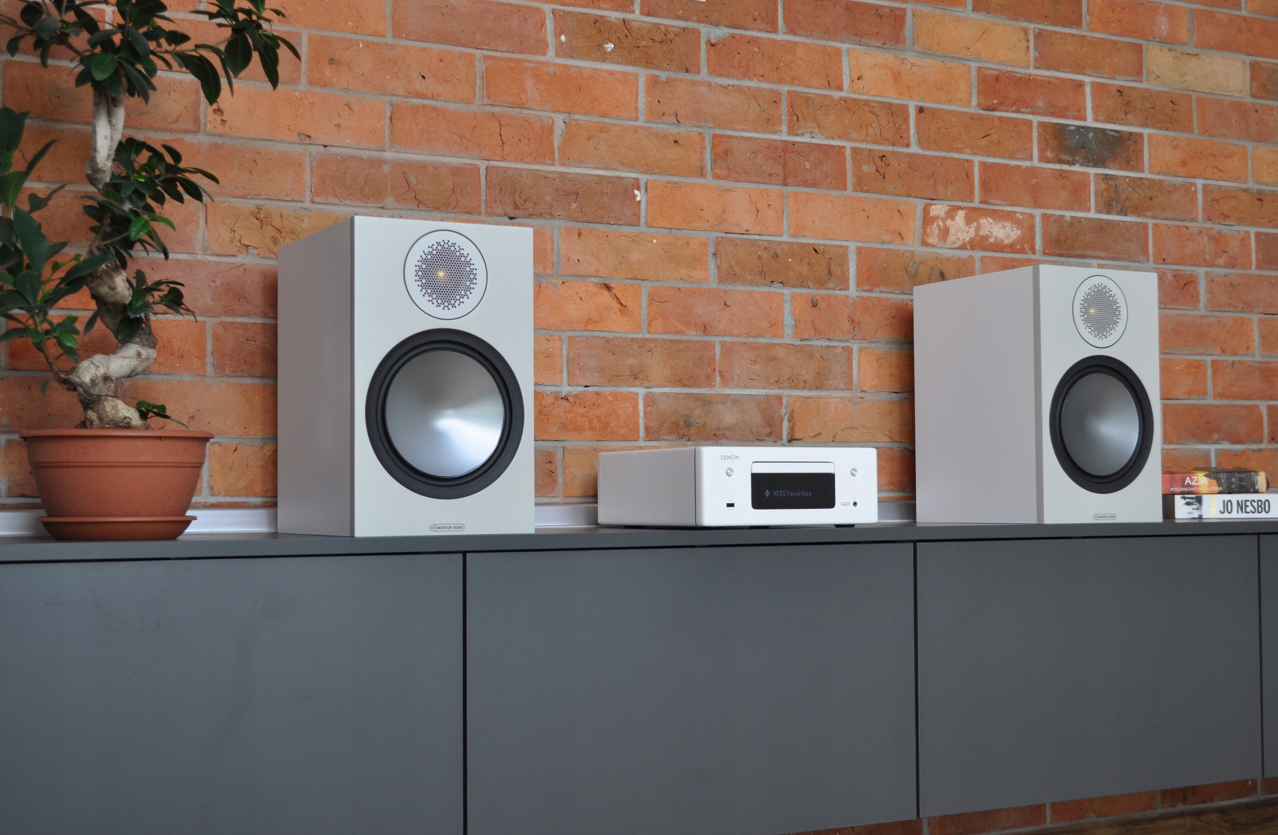 монітор аудіо Бронза 100 білого - білий з трохи сірим фронтом - пара великих, двоповерхових основних стовпців з надзвичайно енергійним, насиченим та багатим звуком у поєднанні з нагородженою нагородою EISA 2019-2020 Multimedia Audio System Denon Ceol 10, універсальним CD/USB/BT/Wifi/FM/FM/Optical таблиця RTV. 4 Стовпці - це великі розміри великих звукових моніторів, які мають міцний низький і глибокий бас.