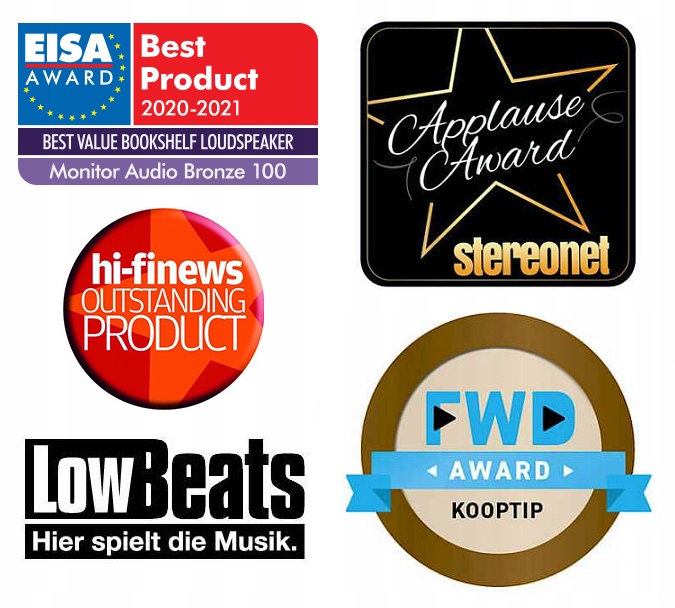 Бронза 100 виграв найвищий трофей у світі оглядів: Європейська нагорода EISA у категорії найцінніших стовпців у своєму ціновому класі. Вердикт: