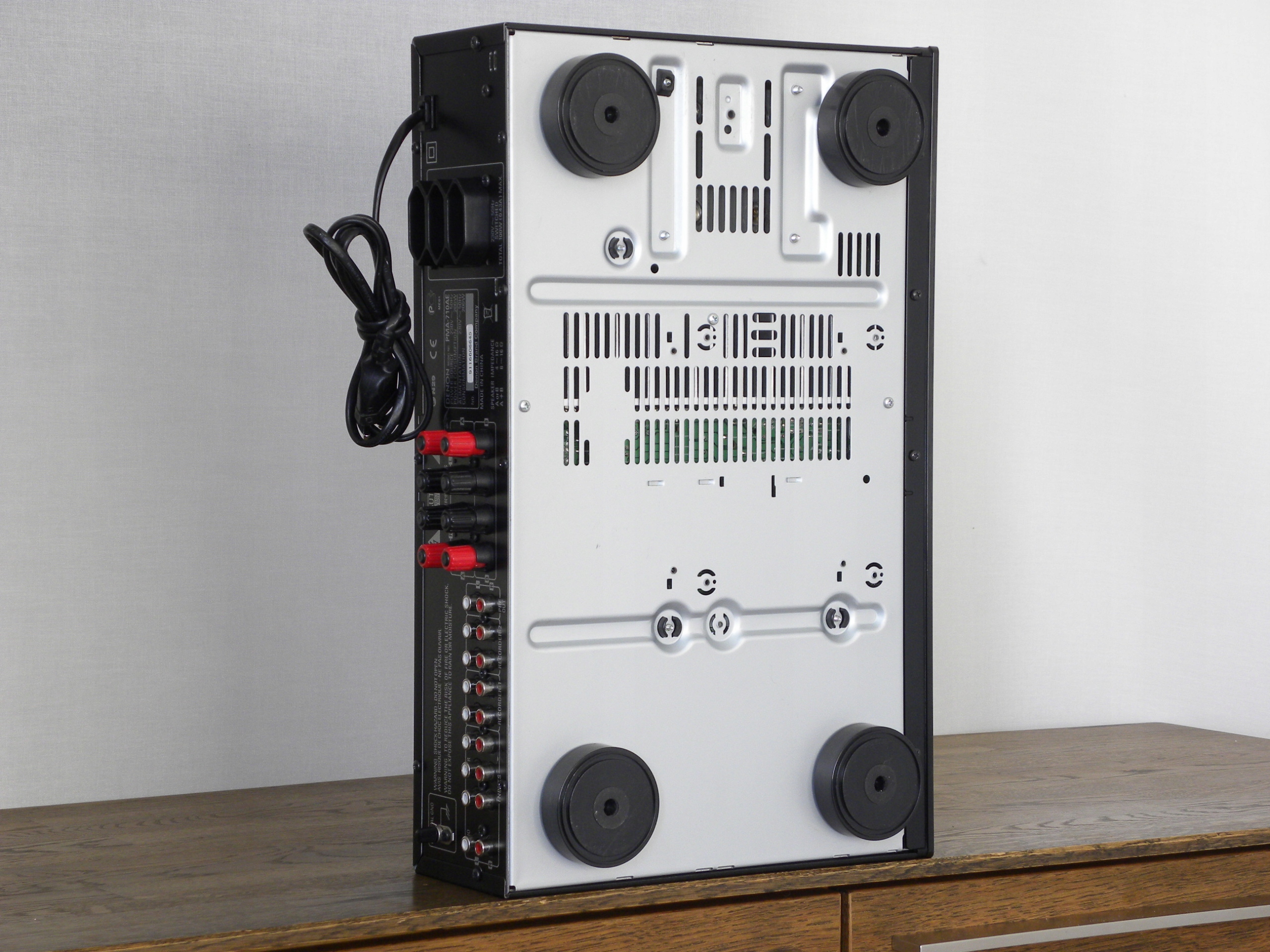Це має 6 аудіовходів, включаючи вертушки, і вихід для 2 пар динаміків 4-16 Ом.